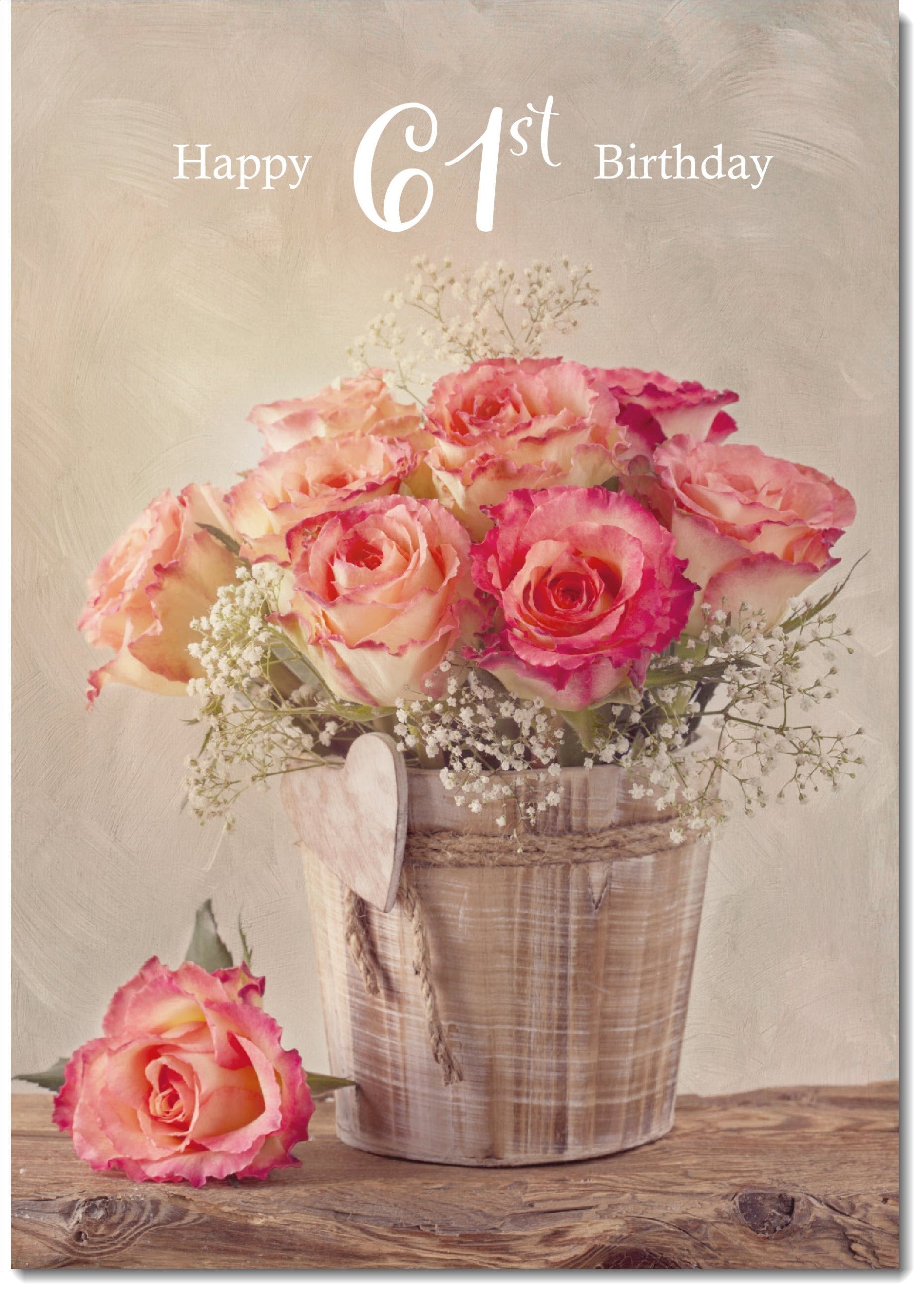 61st Birthday Card Age 61 for Her Pink Rose Bouquet
