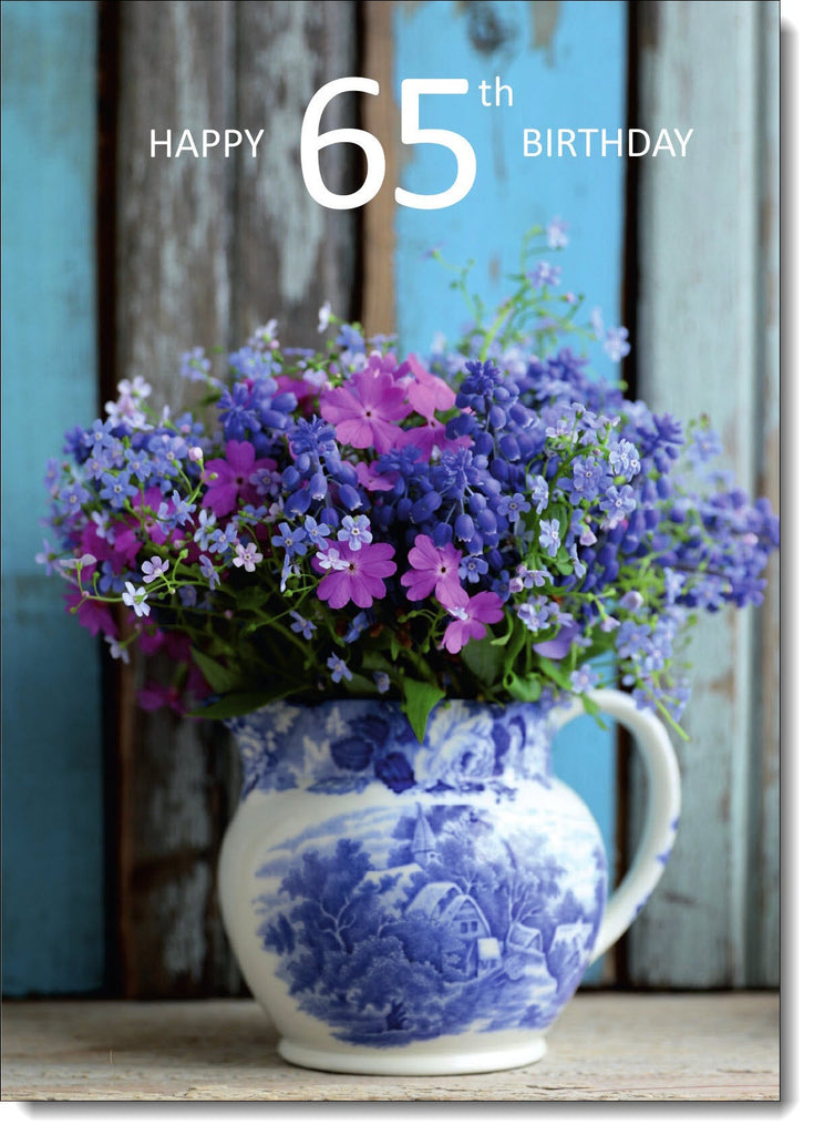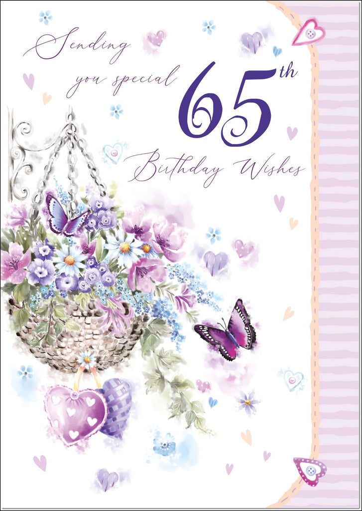 65th Birthday Card Age 65 for Her Purple Hanging Basket