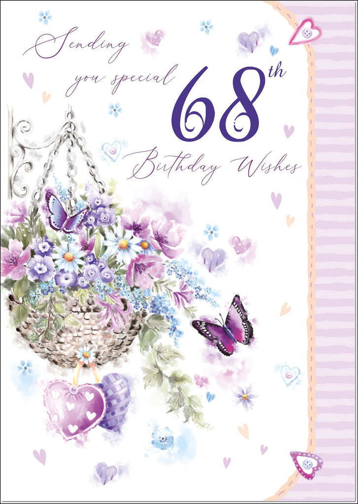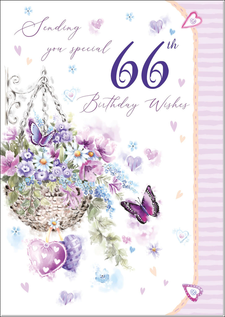 66th Birthday Card Age 66 for Her Purple Hanging Basket