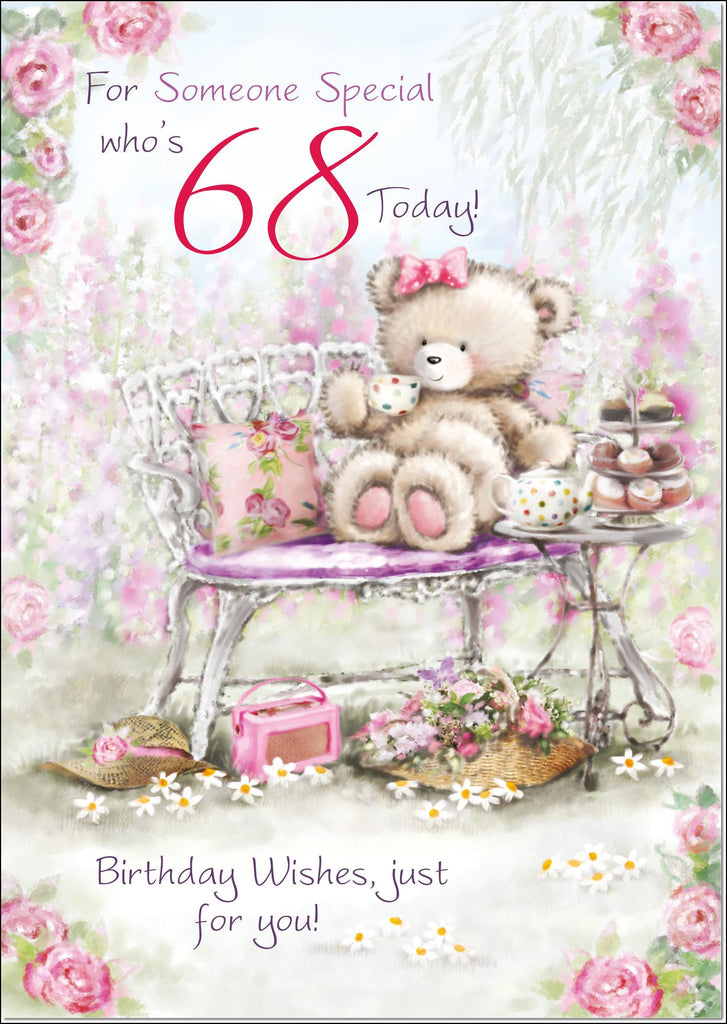 68th Birthday Card Age 68 for Her Pink Rose Bouquet