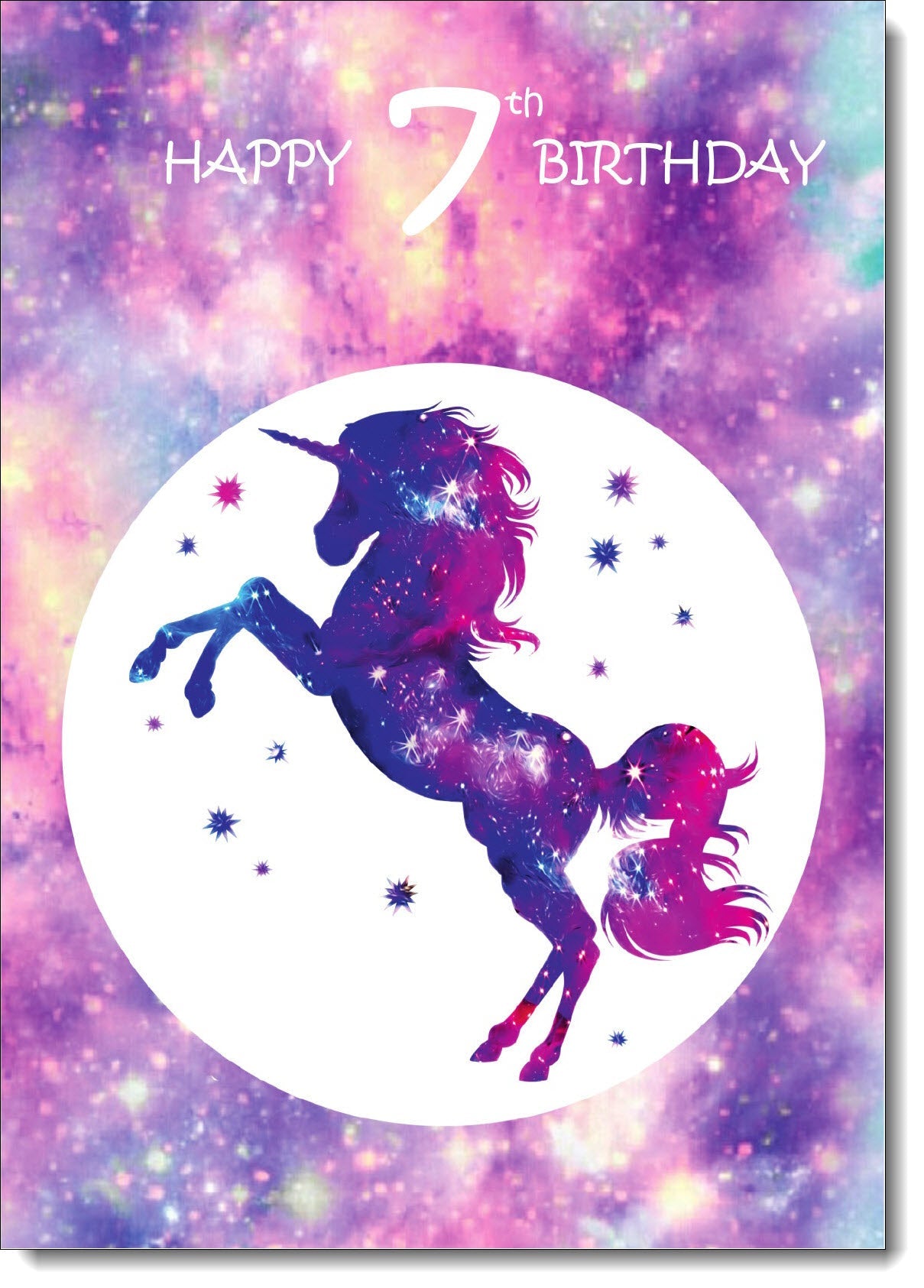 7th Birthday Card Age 7 for Girl Stardust Unicorn
