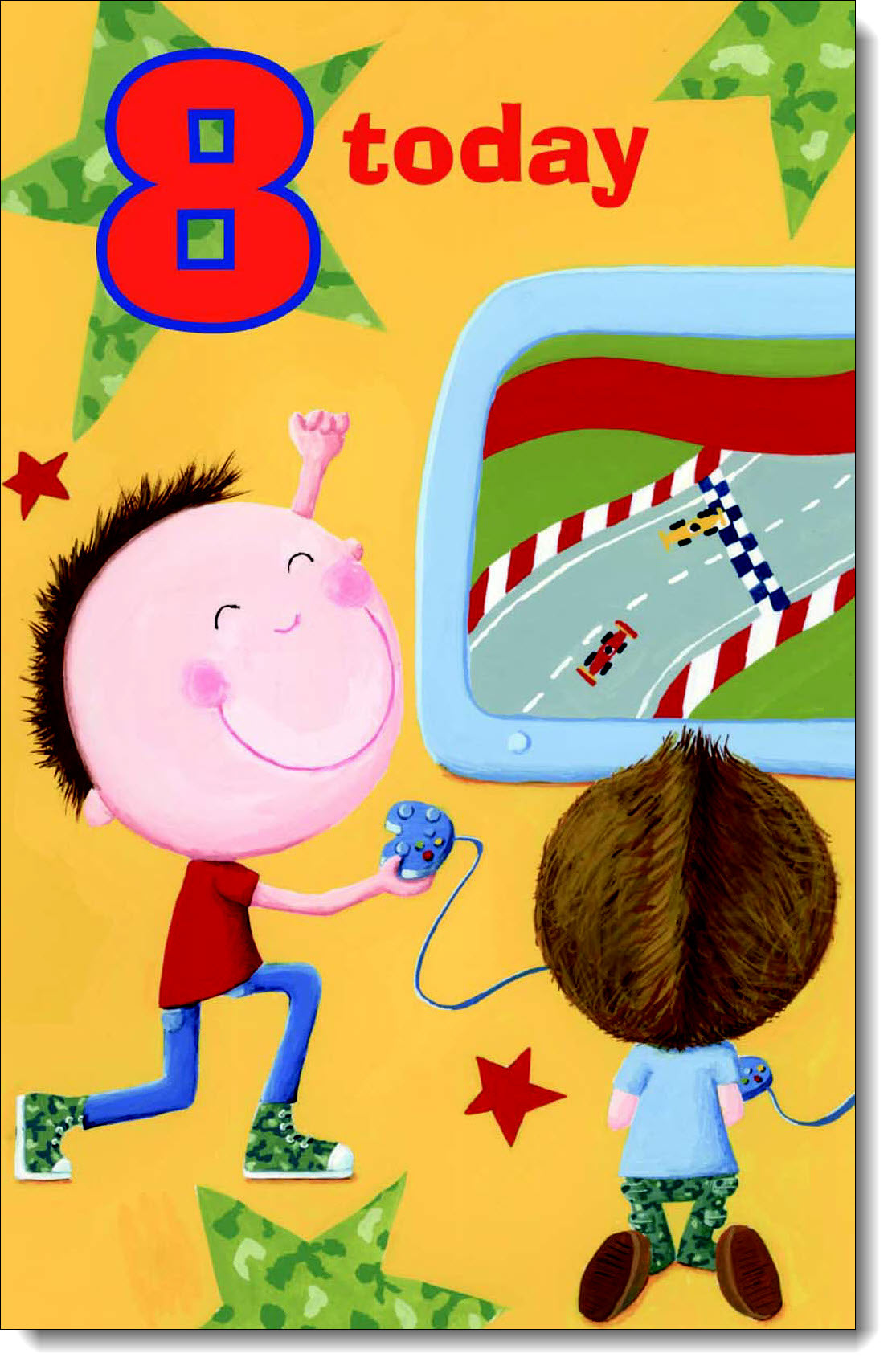 8th Birthday Card Age 8 for Boy Racing Computer Game