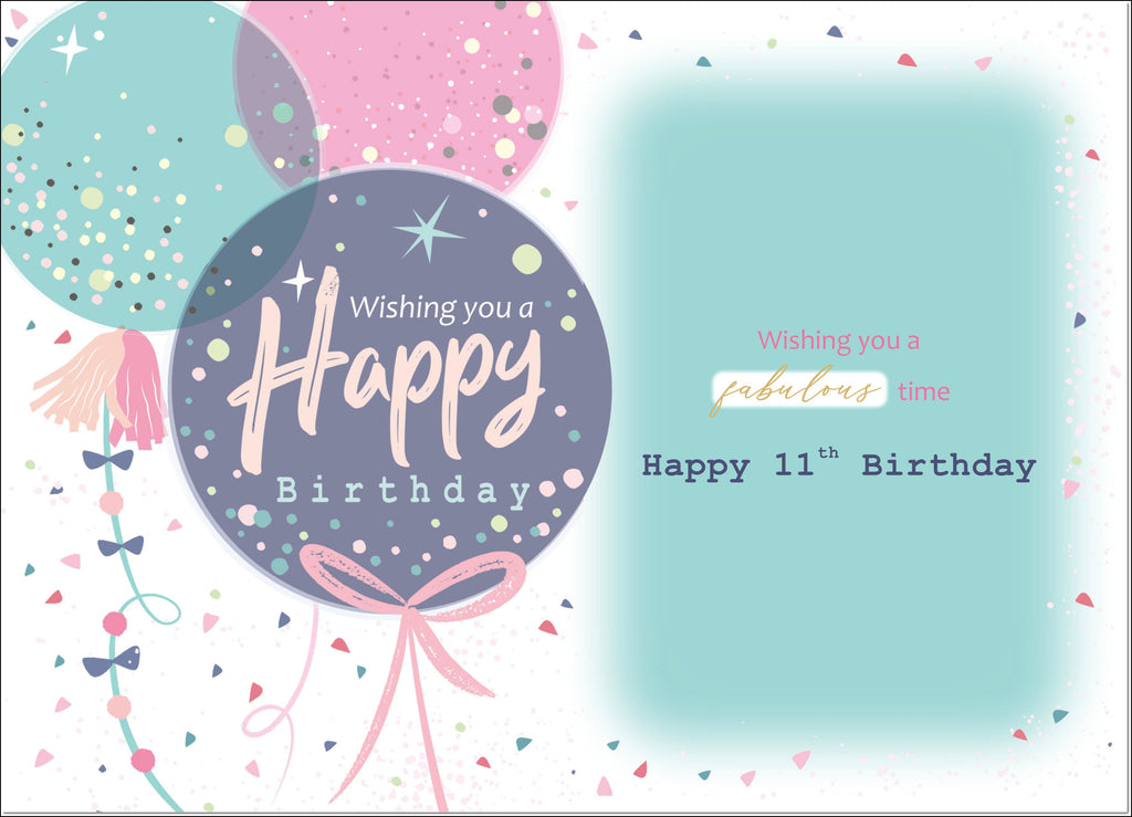 11th Birthday Card Age 11 for Girl Confetti Happy Birthday Balloons