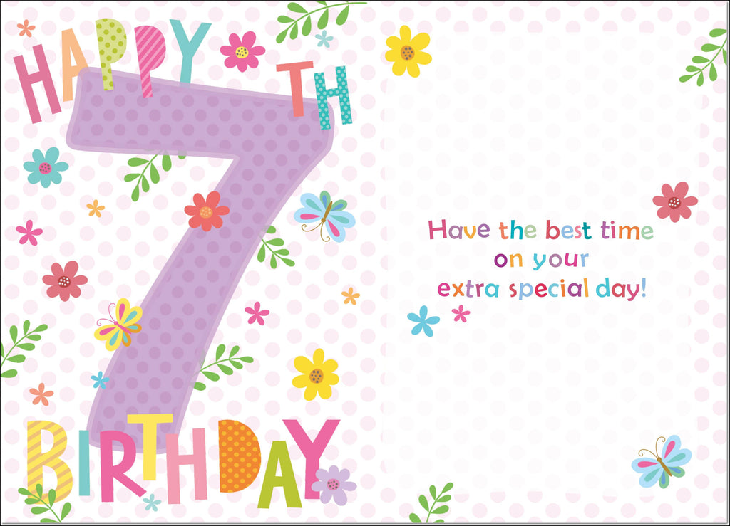 7th Birthday Card Age 7 for Girl Floral Numbers