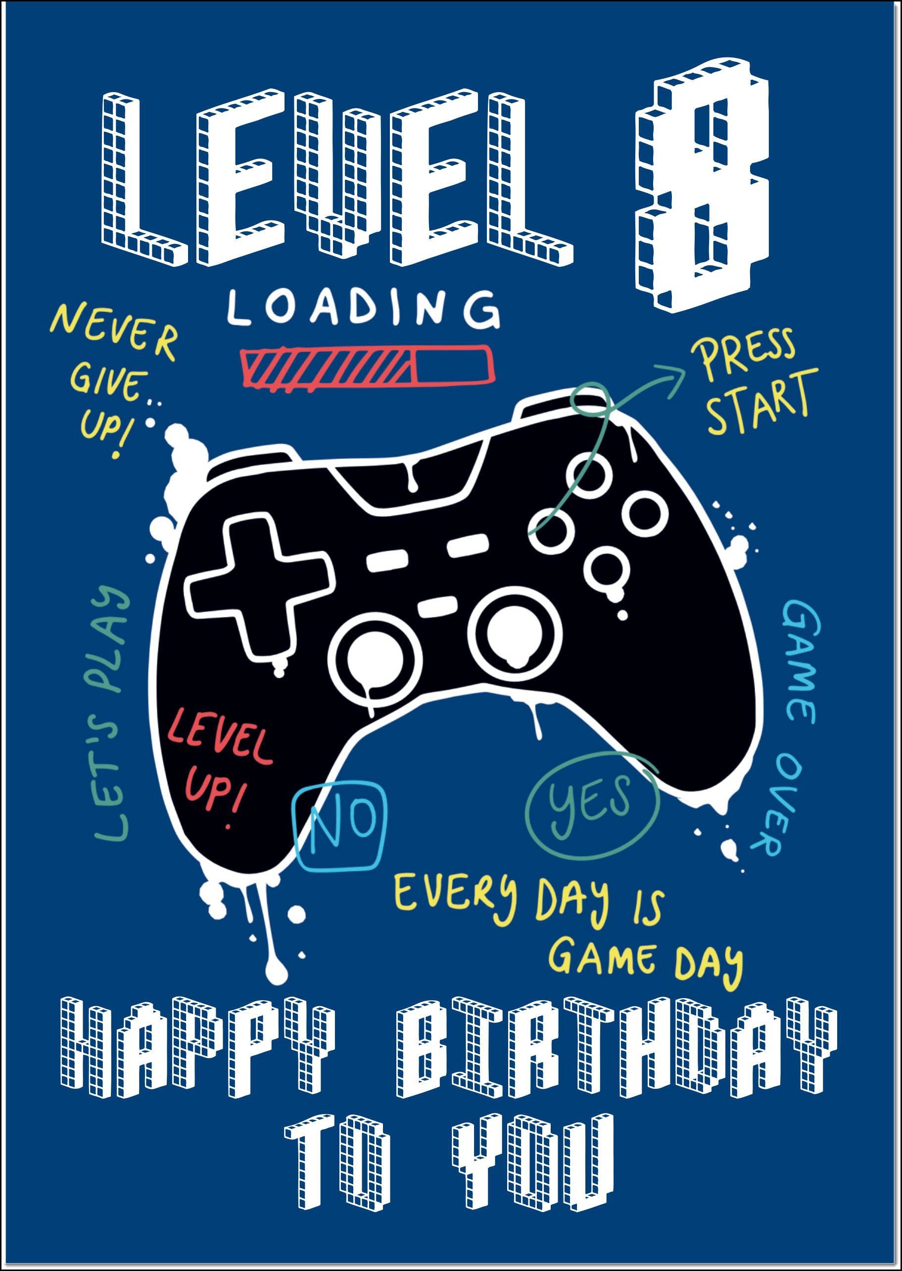 8th Birthday Card Age 8 for Boy Level Up Gaming Console