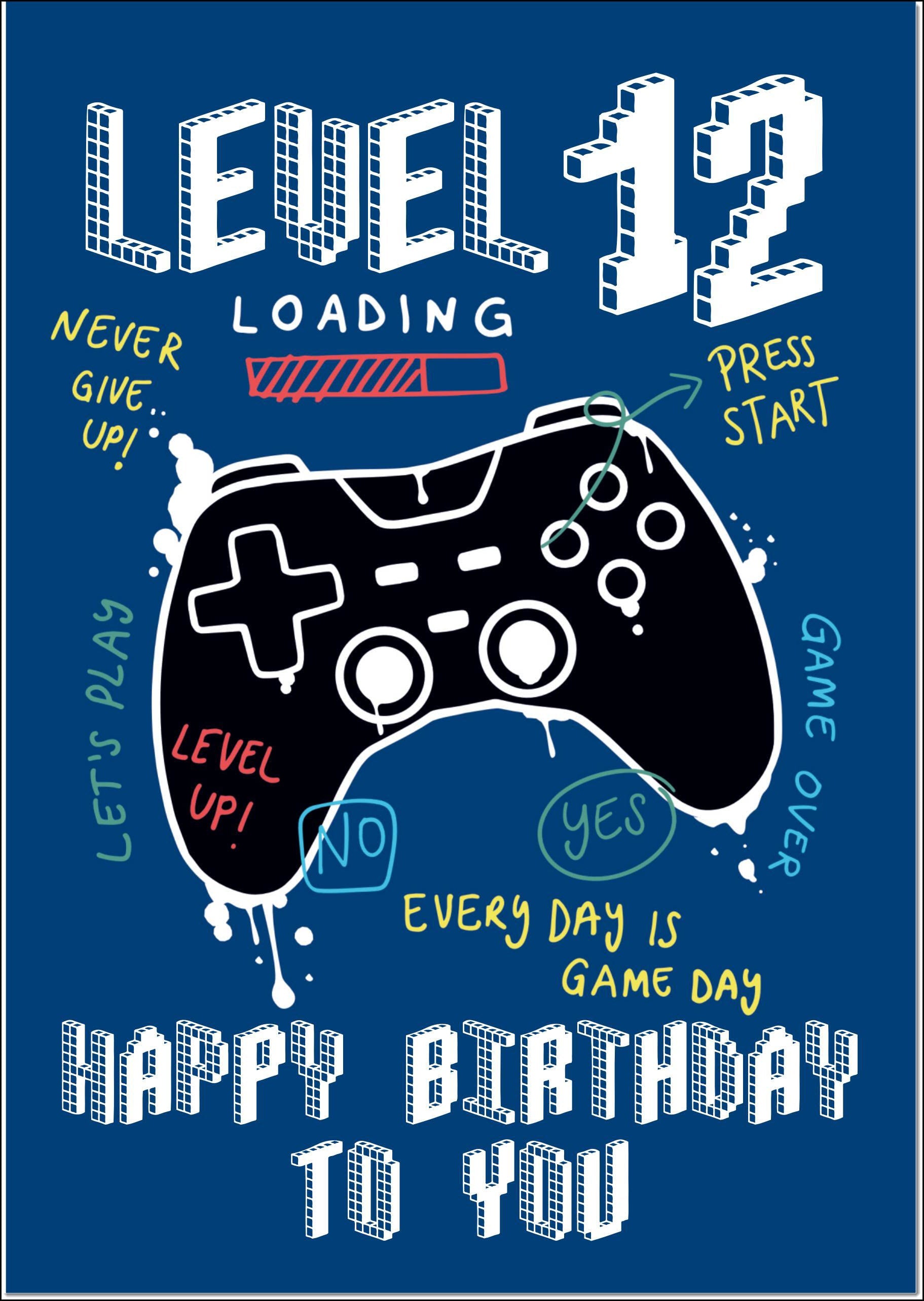 12th Birthday Card Age 12 for Boy Level Up Gaming Console