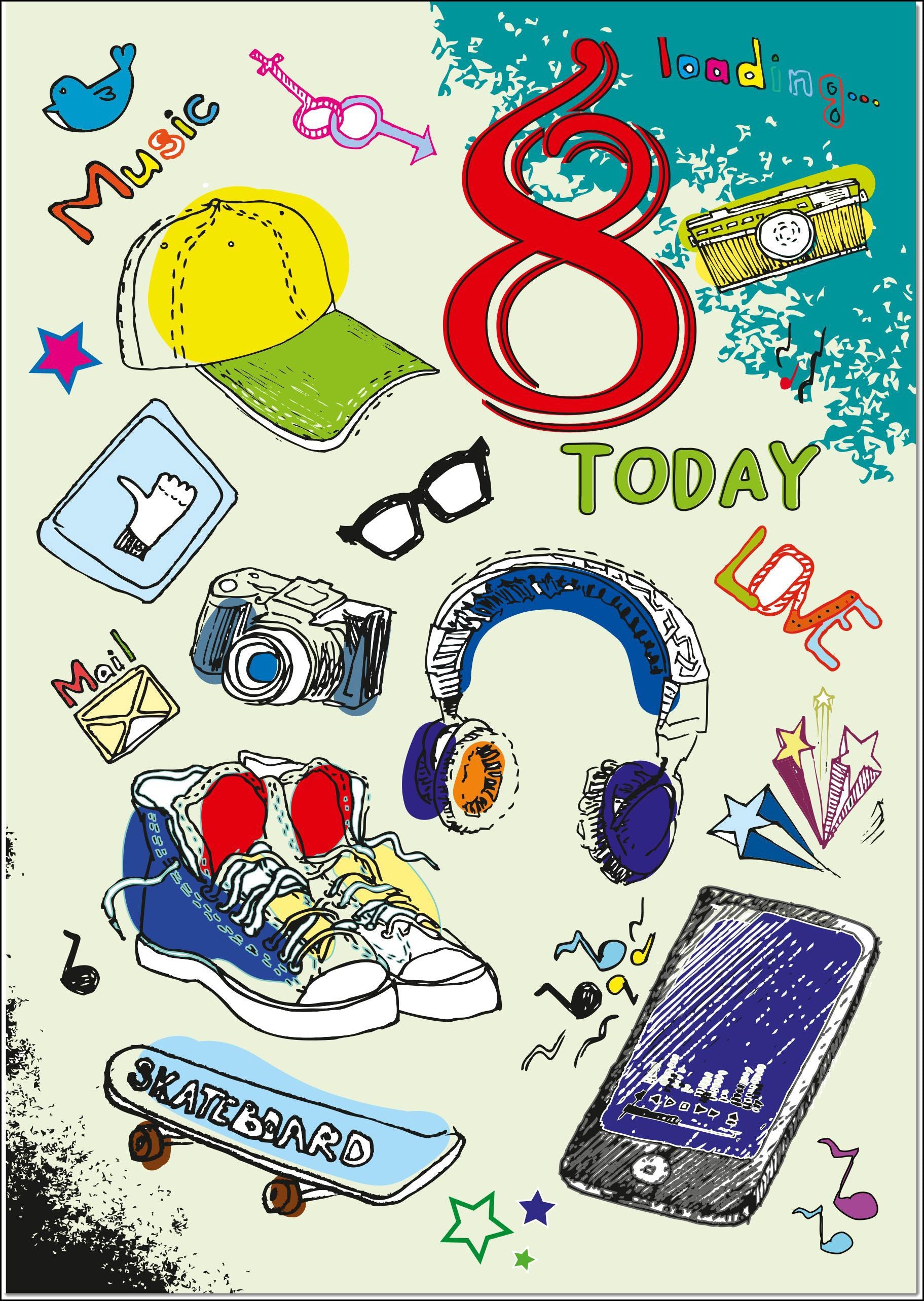 8th Birthday Card Age 8 for Boy Funky Icons