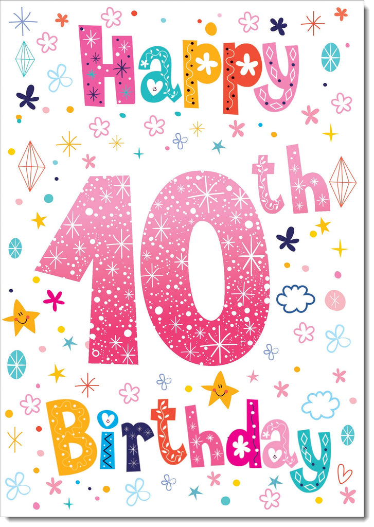 10th Birthday Card Age 10 for Girl Floral Numbers