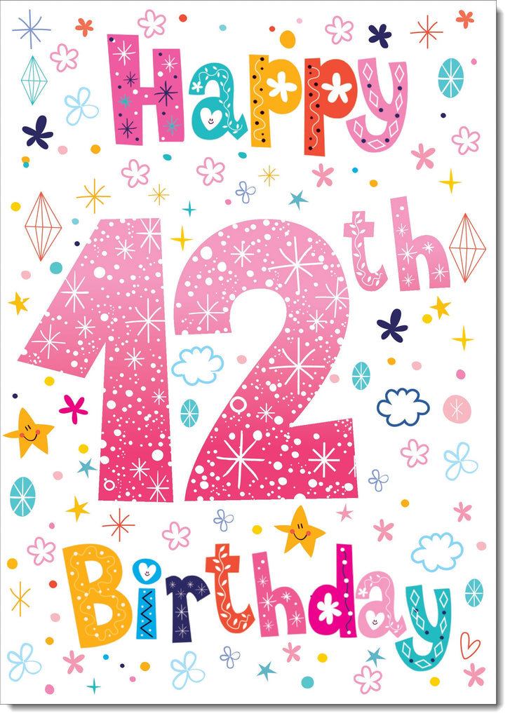 12th Birthday Card Age 12 for Girl Strawberry Cake