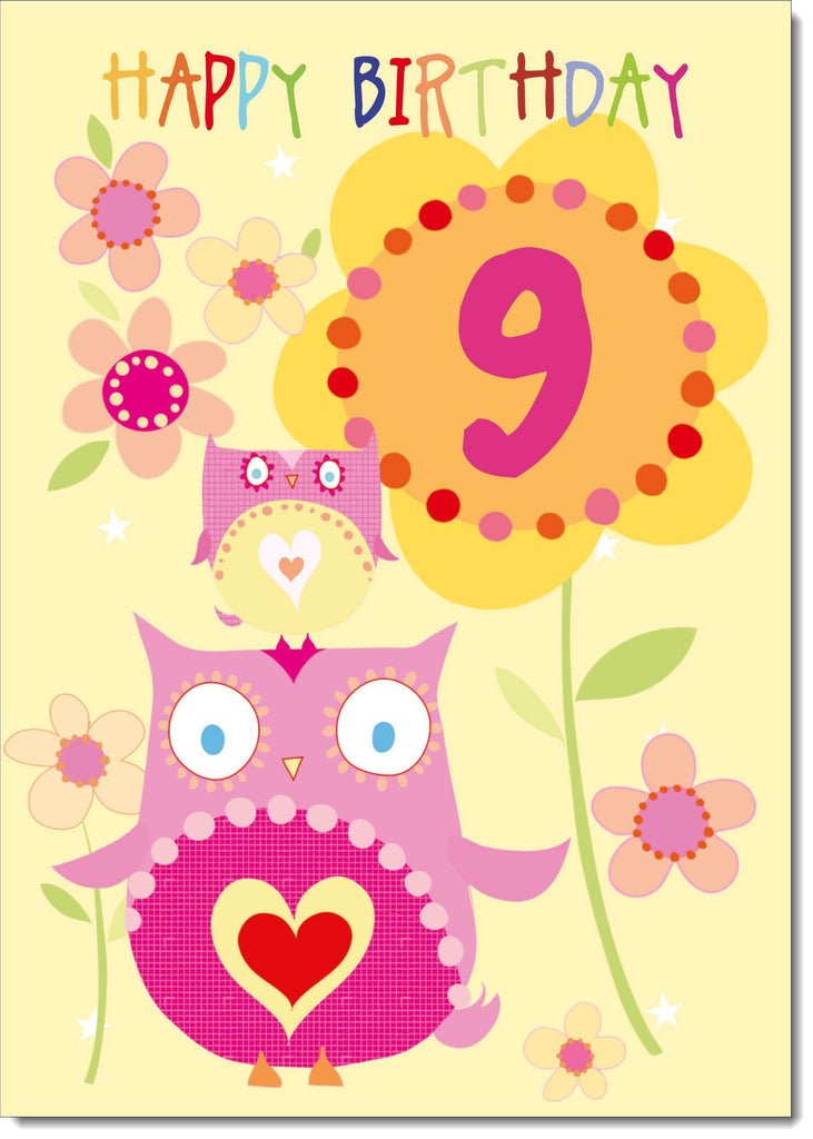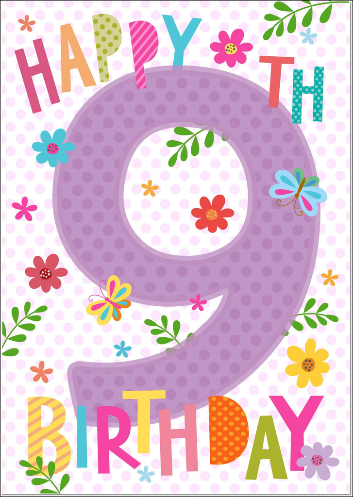 9th Birthday Card Age 9 for Girl Floral Numbers