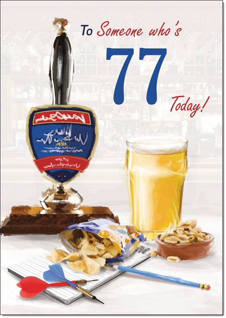 77th Birthday Card Age 77 for Her Pink Rose Bouquet