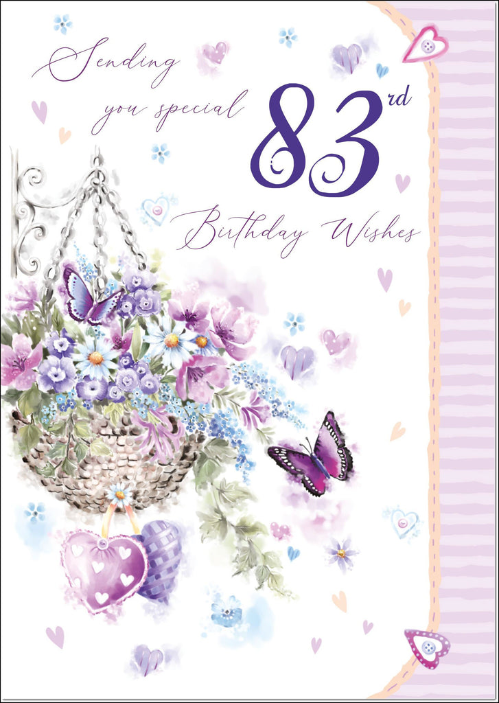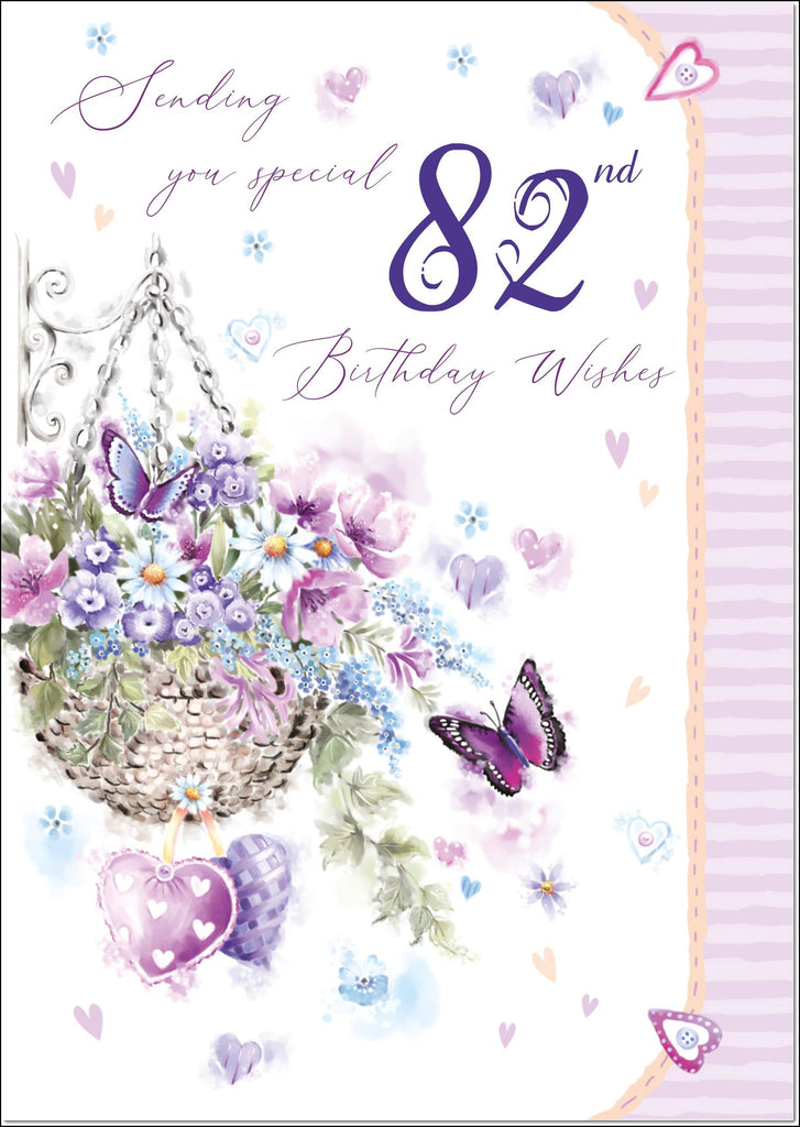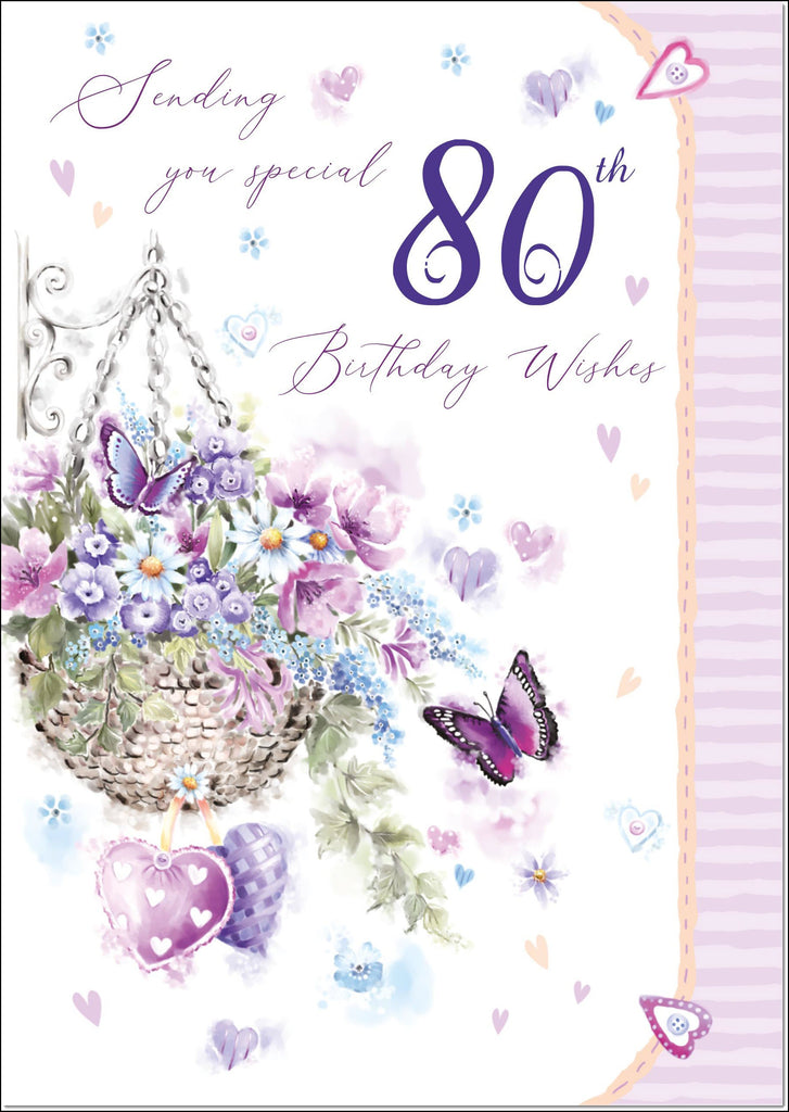 80th Birthday Card Age 80 for Her Purple Hanging Basket