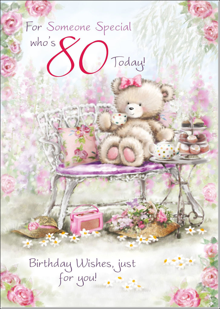 80th Birthday Card Age 80 for Her Cute Teddy's Afternoon Tea