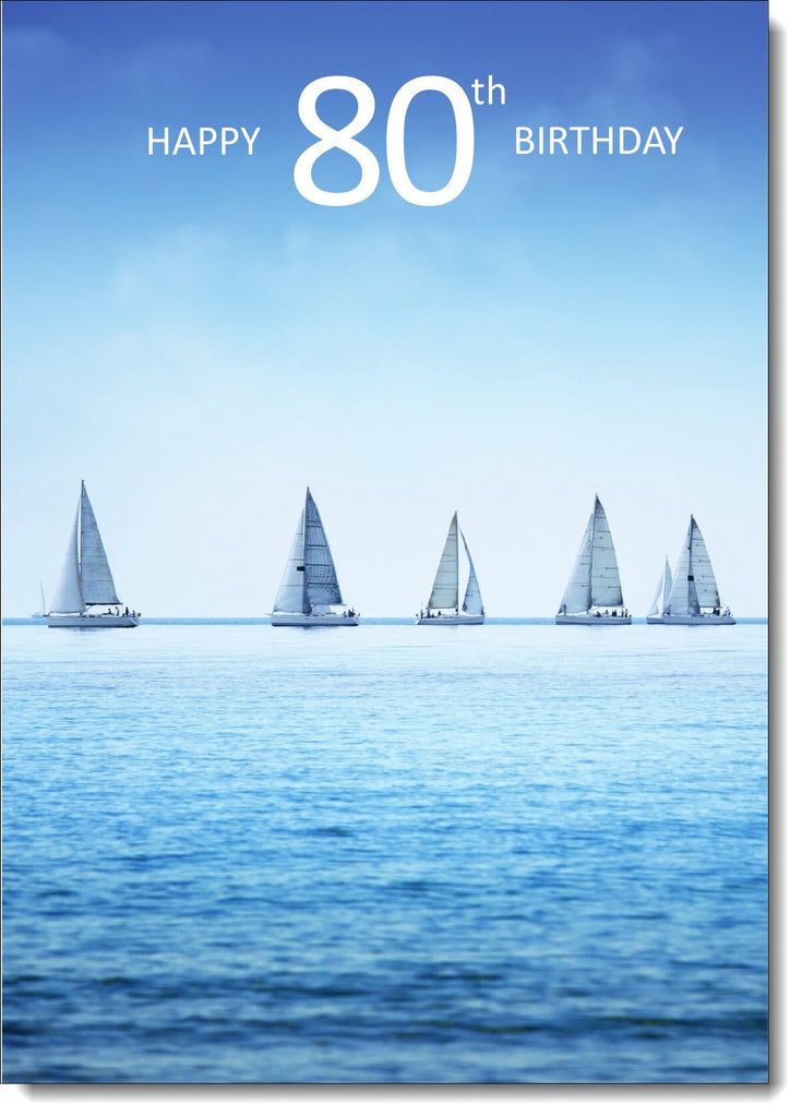 80th Birthday Card Age 80 for Him Sailing Boats