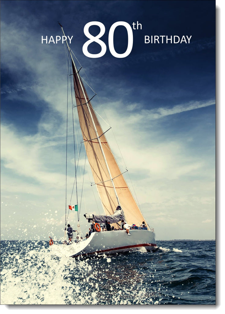 80th Birthday Card Age 80 for Him Sailing Boat