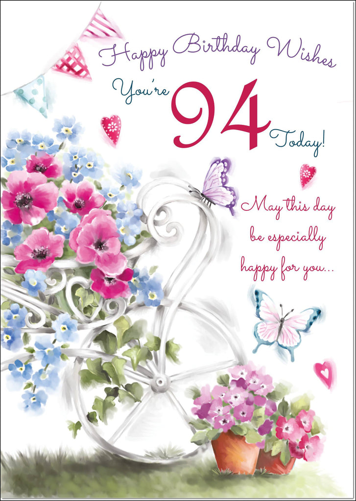 95th Birthday Card Age 95 for Her Garden Wheelbarrow Bouquet