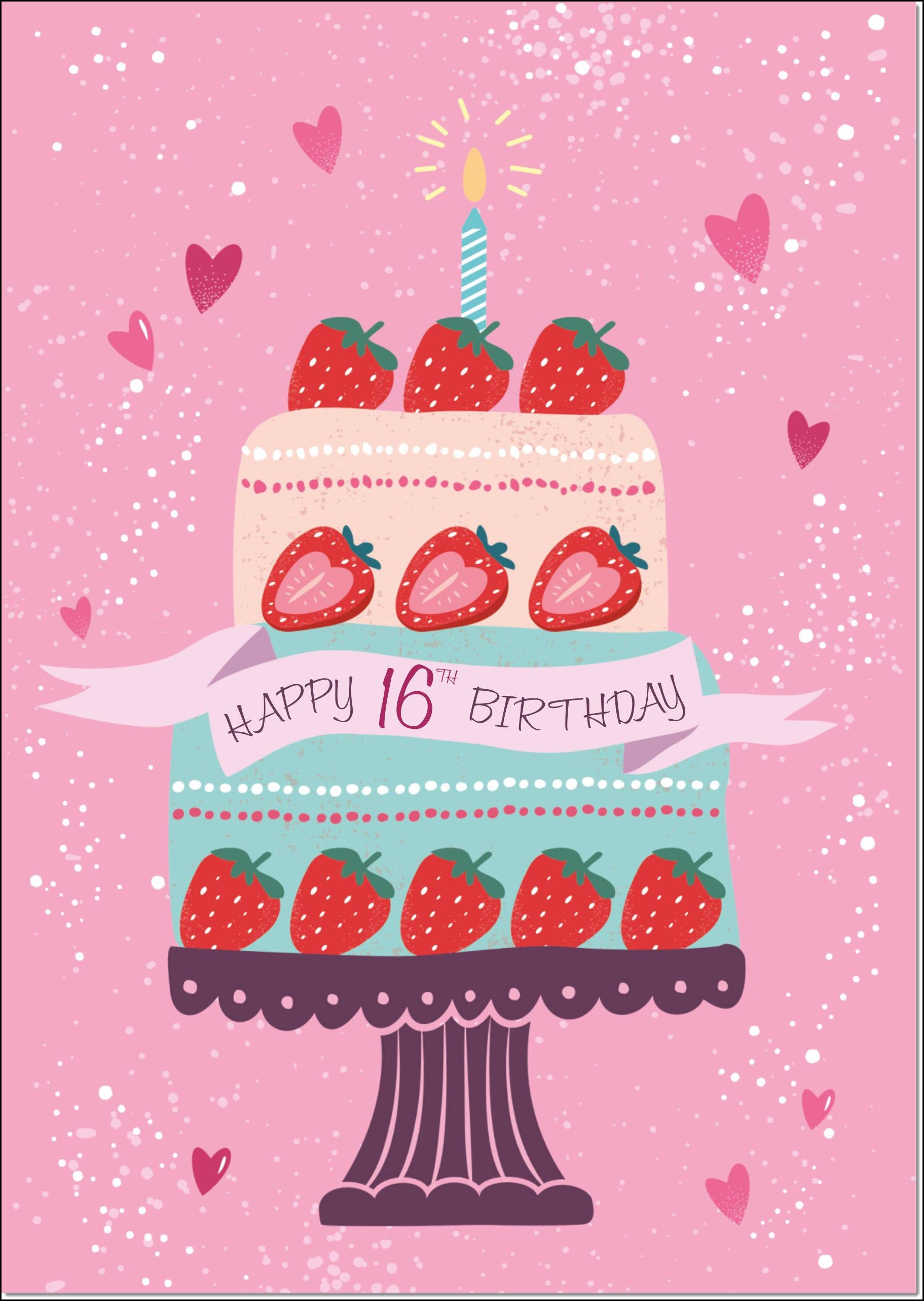 16th Birthday Card Age 16 for Her Strawberry Cake