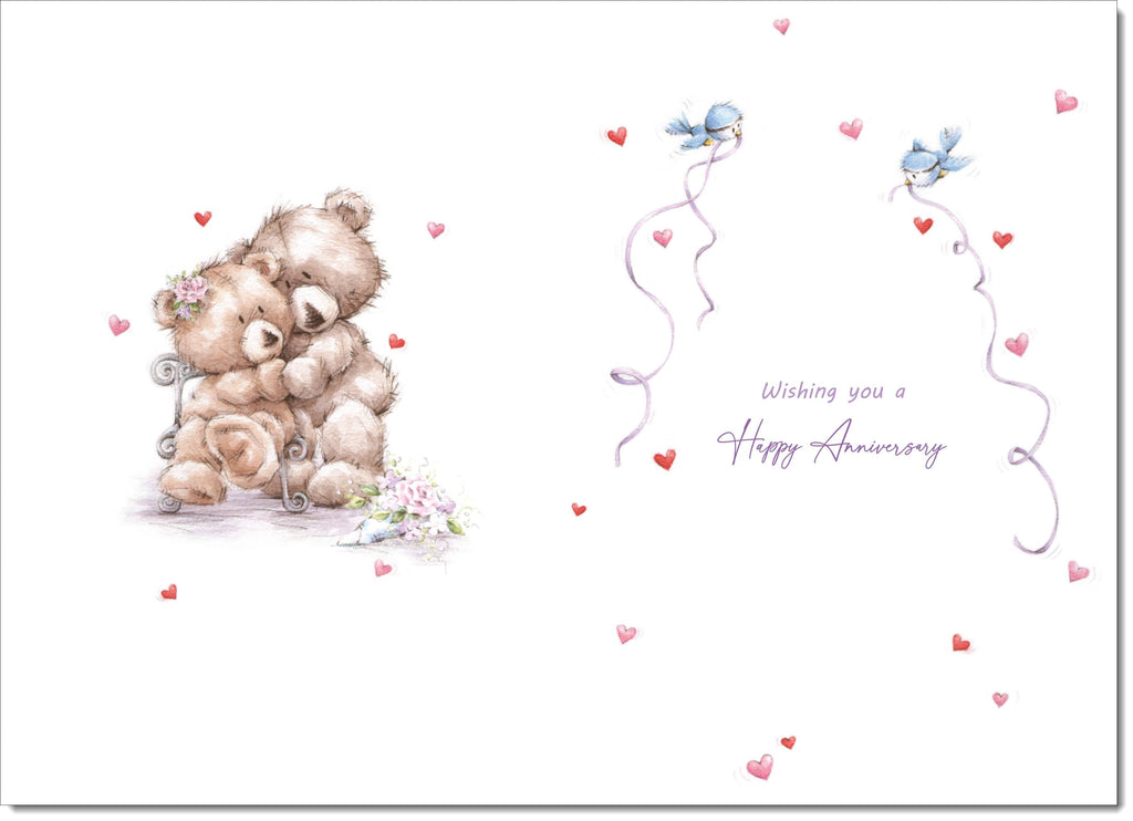Your Wedding Anniversary Card Cute Teddy Couple with Ribbons