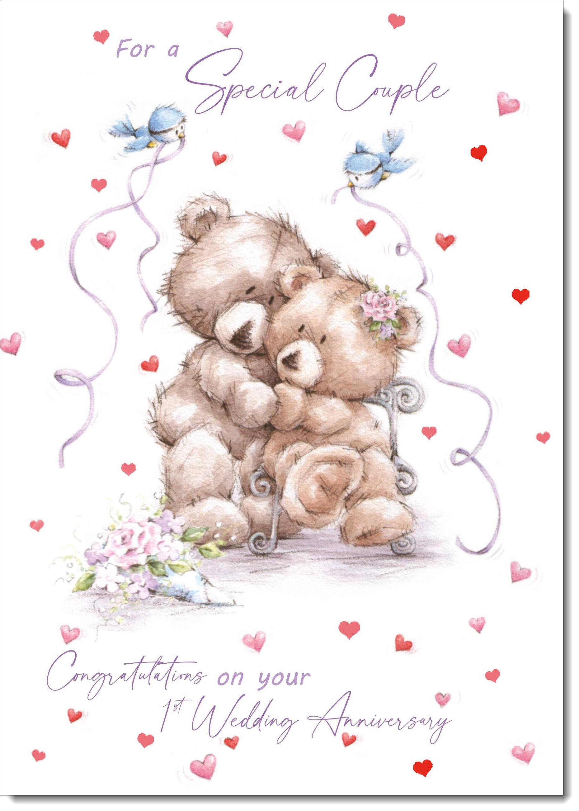 Your Wedding Anniversary Card Cute Teddy Couple with Ribbons