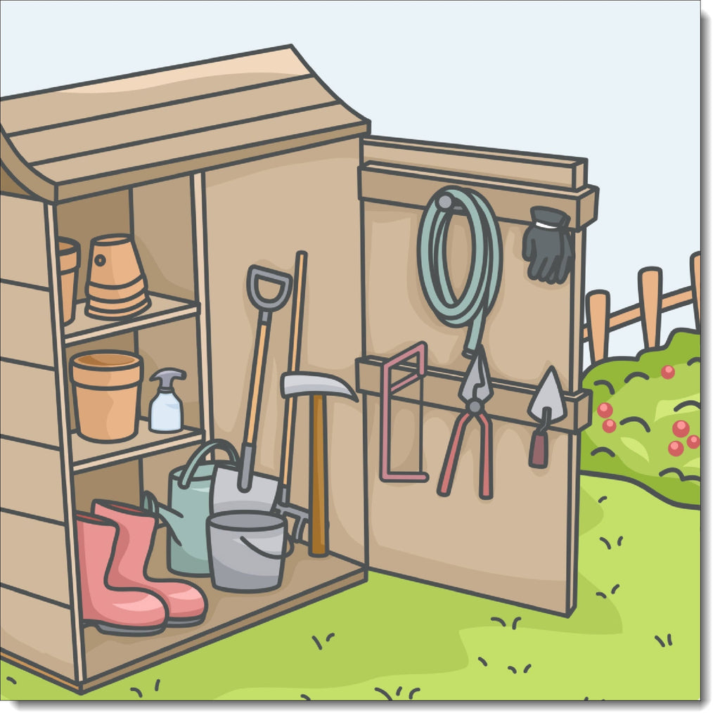 Birthday Card for Him Traditional Garden Shed and Tools