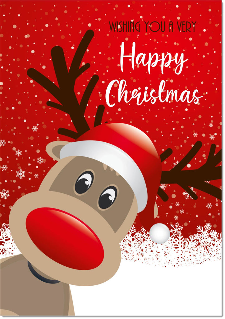 Happy Christmas Card Stag and Doe in Snowy Forest