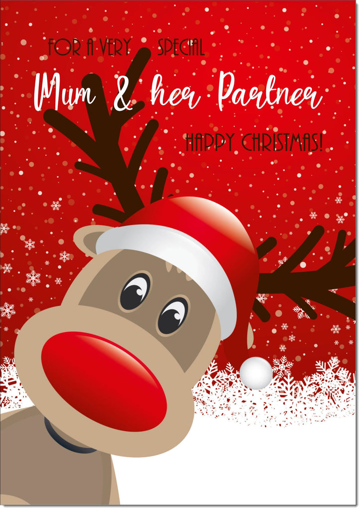 Mum & Partner Christmas Card Rudolph in Snow