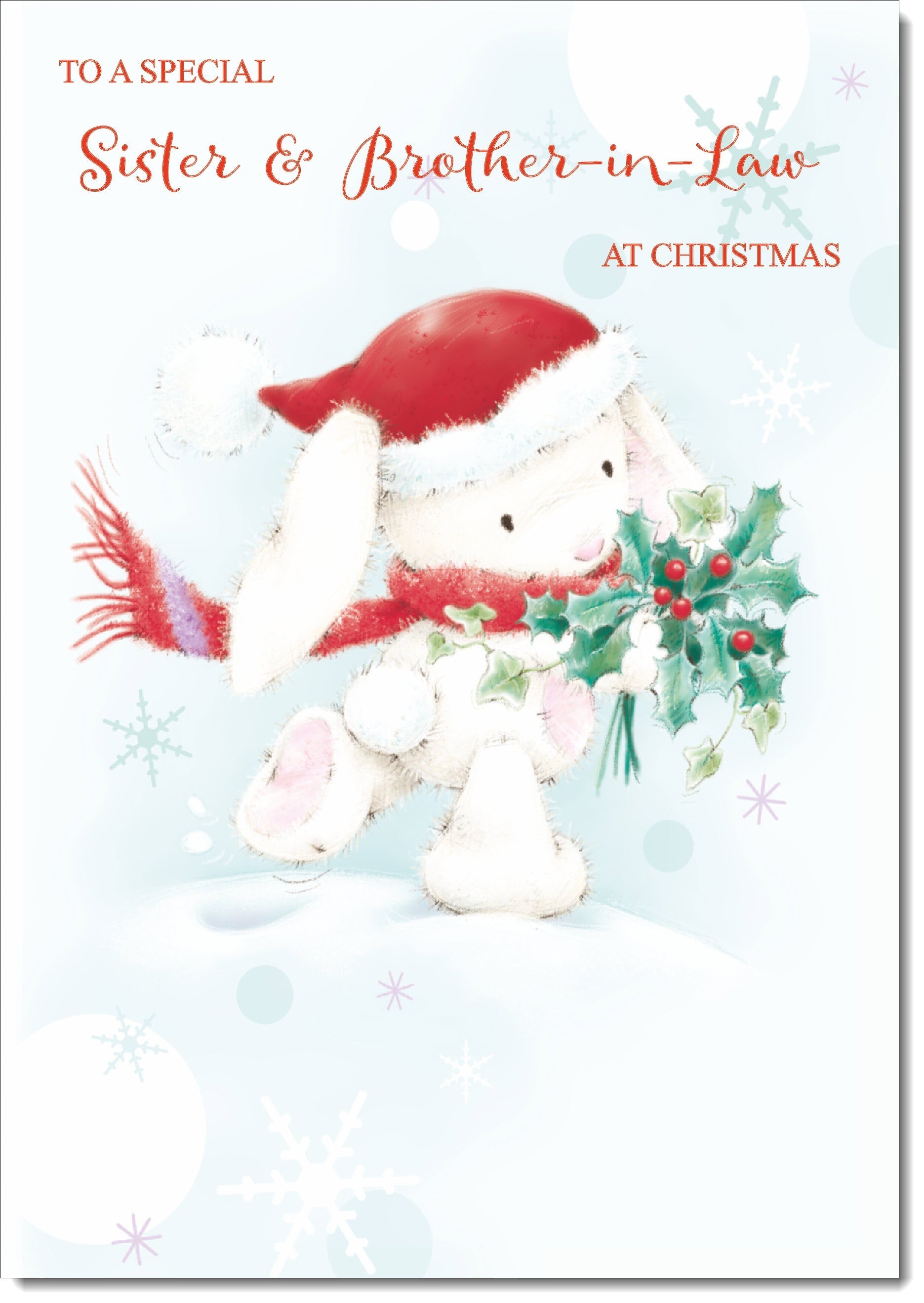 Sister & Brother-in-Law Christmas Card Cute Rabbit with Holly