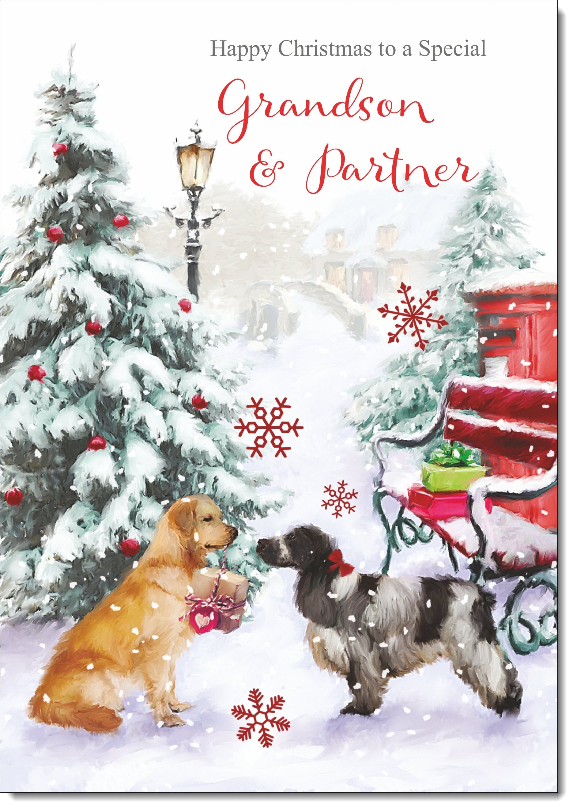 Grandson & Partner Christmas Card Two Dogs in Snow