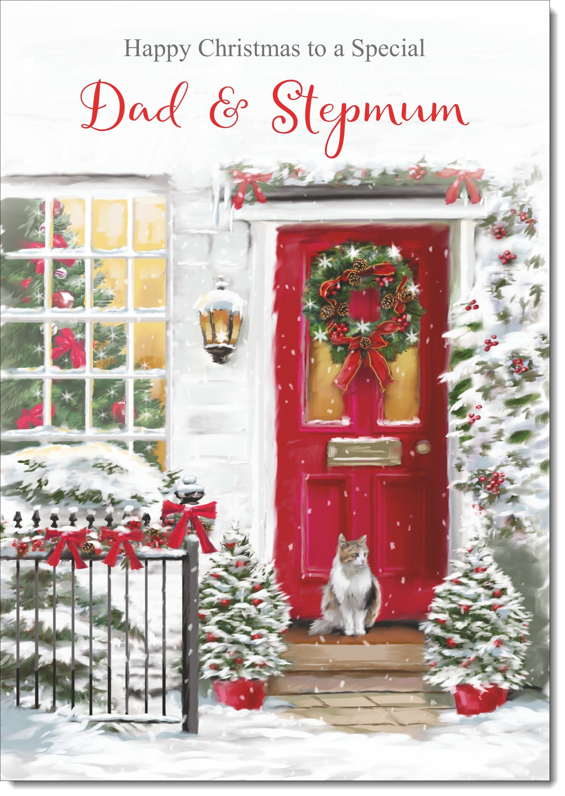 Dad & Stepmum Christmas Card Cat by Snowy Red Door
