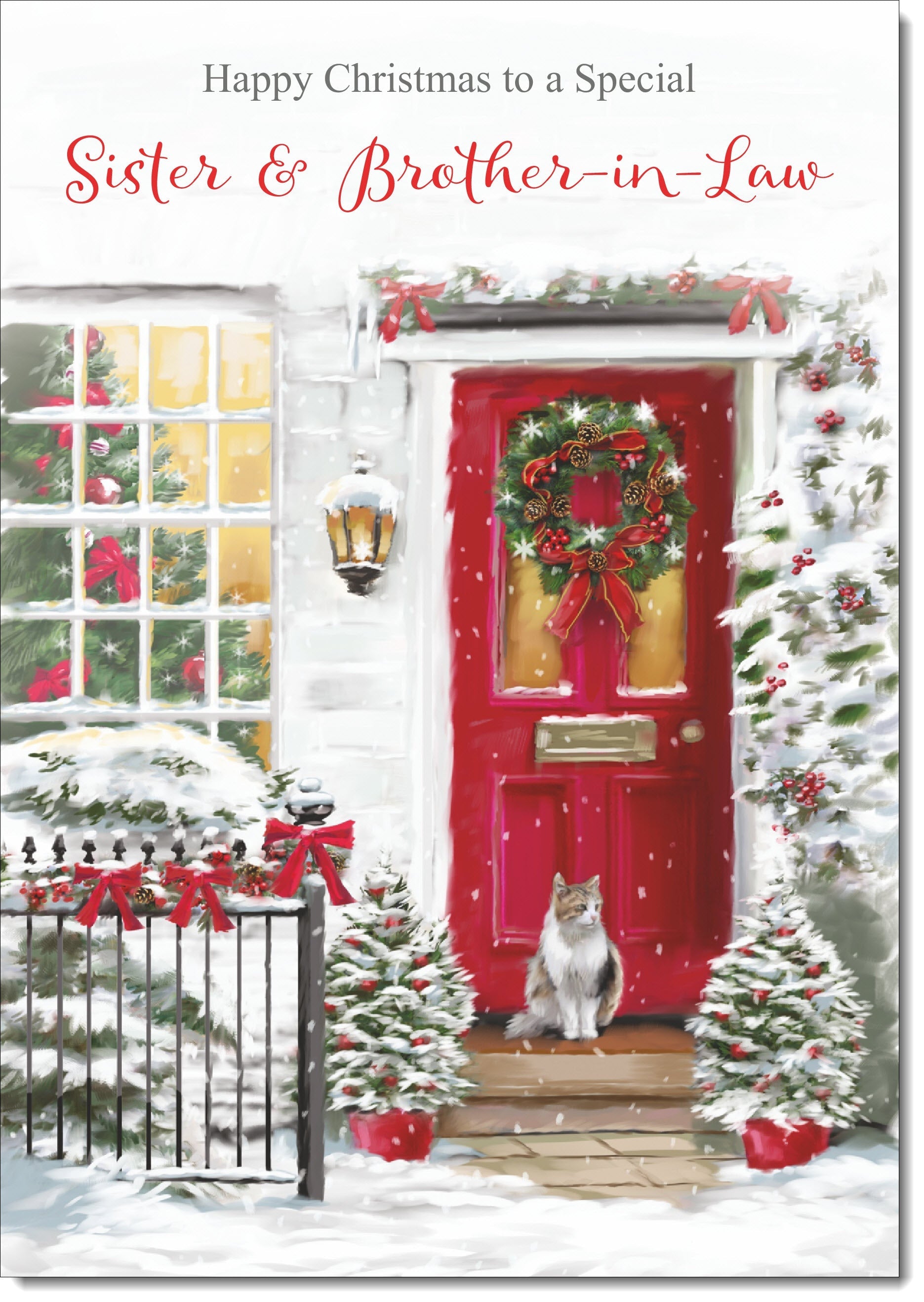 Sister & Brother-in-Law Christmas Card Cat by Snowy Red Door