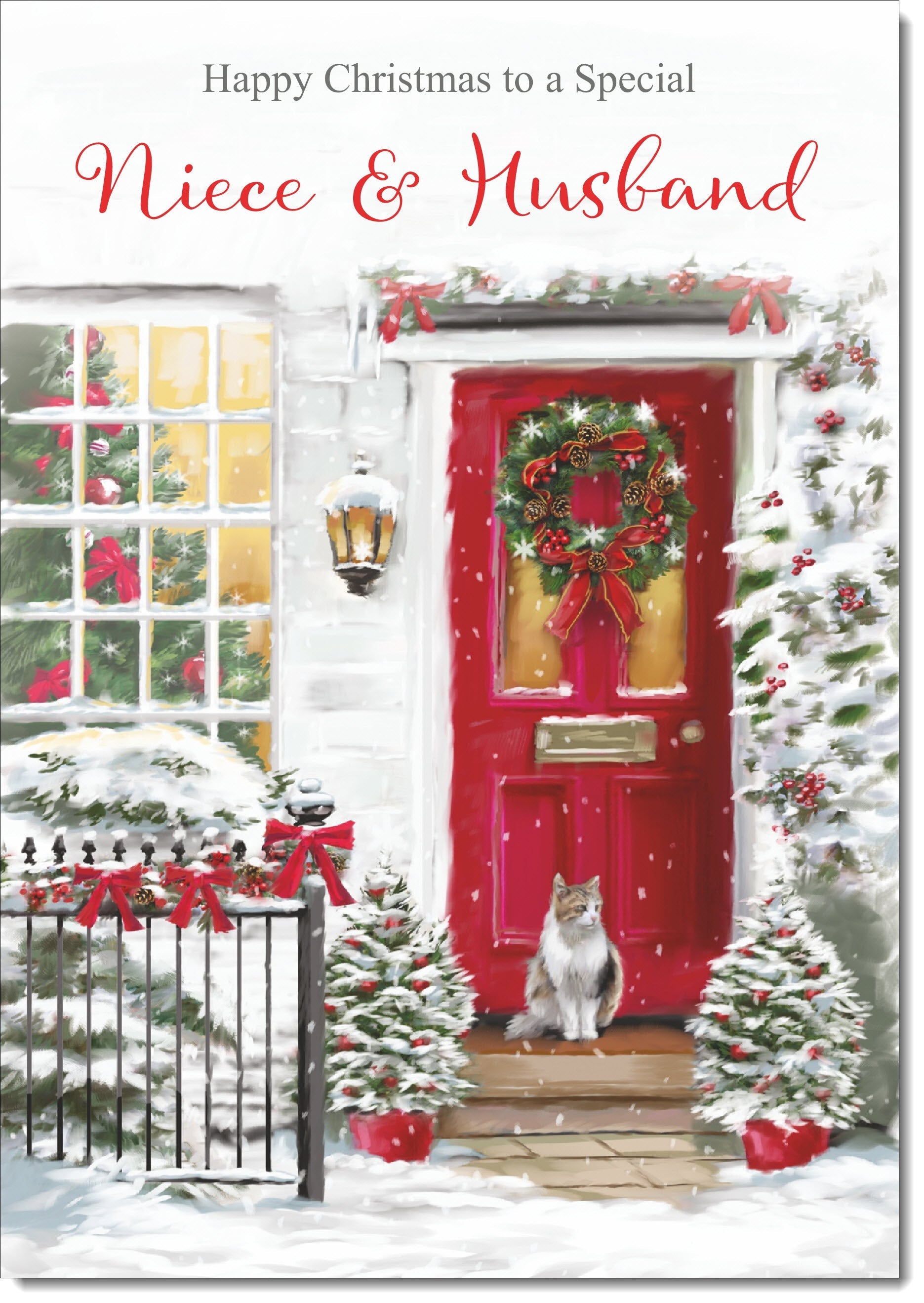 Niece & Husband Christmas Card Cat by Snowy Red Door