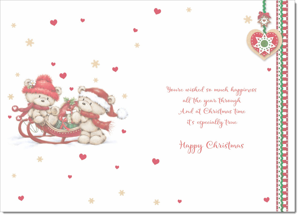 Grandson & Partner Christmas Card Two Cute Bears on Sled