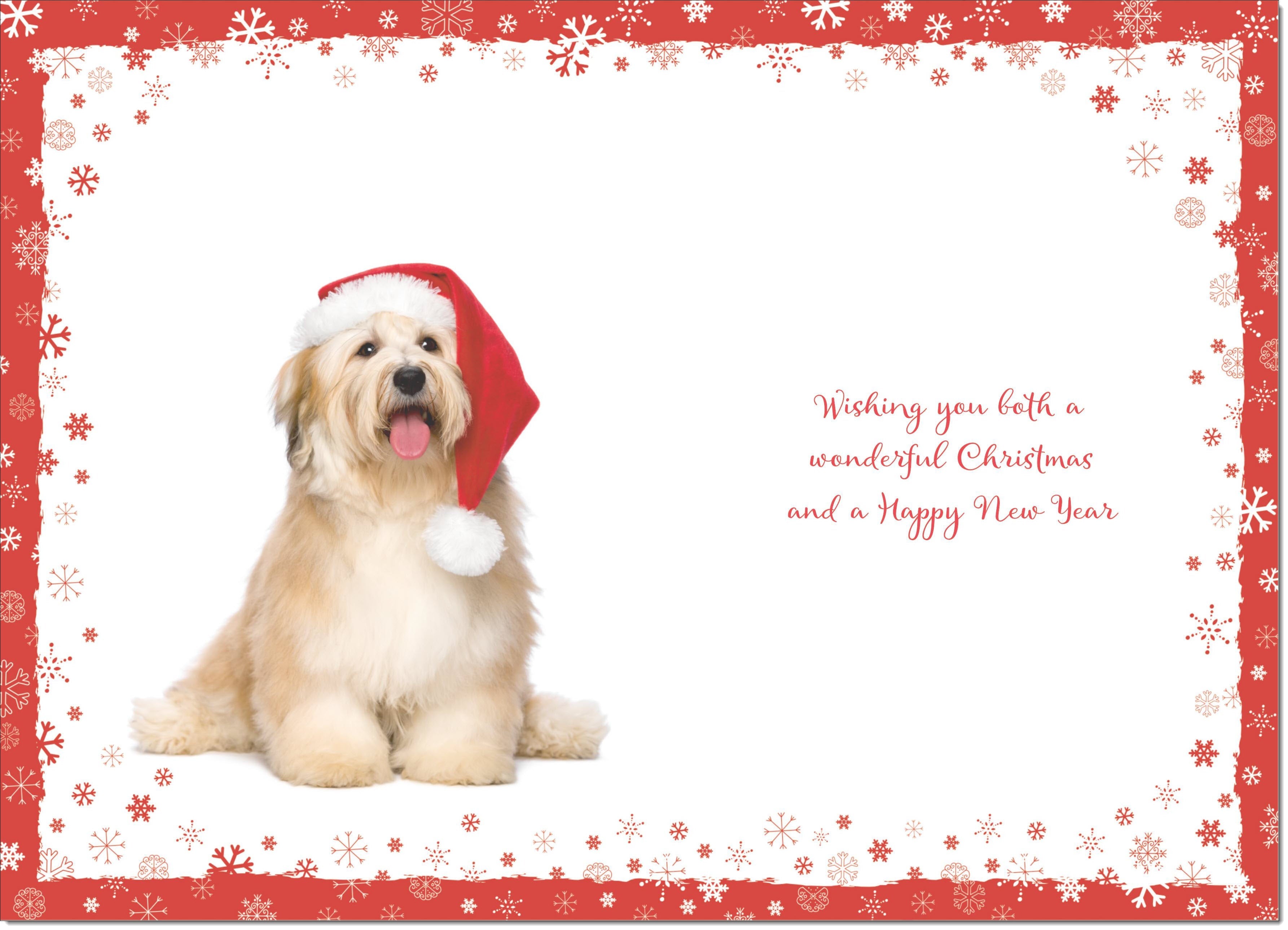 Nanny & Grandad Christmas Card Fluffy Dog in Santa Hat