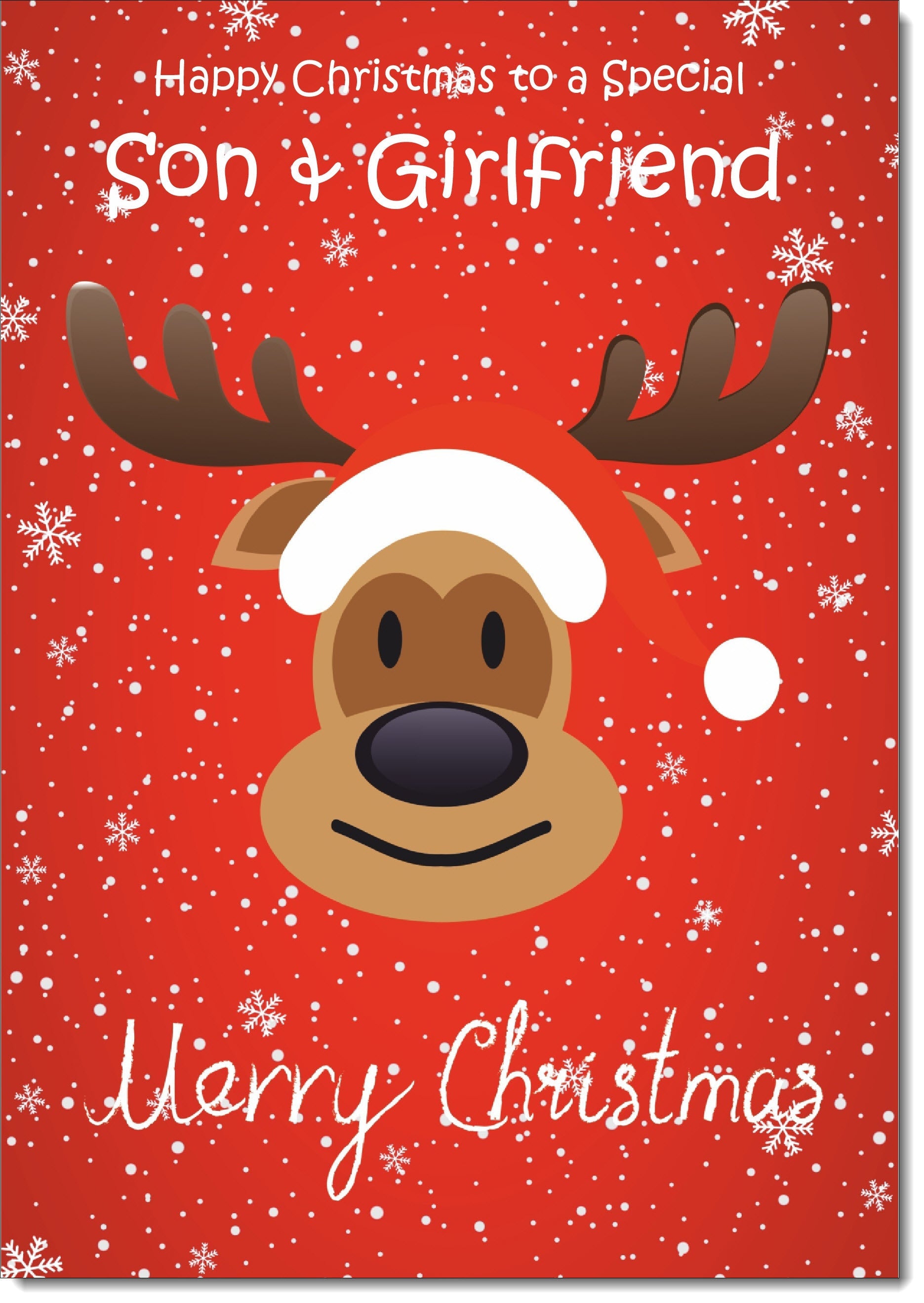 Son & Girlfriend Christmas Card Rudolph on Red Background