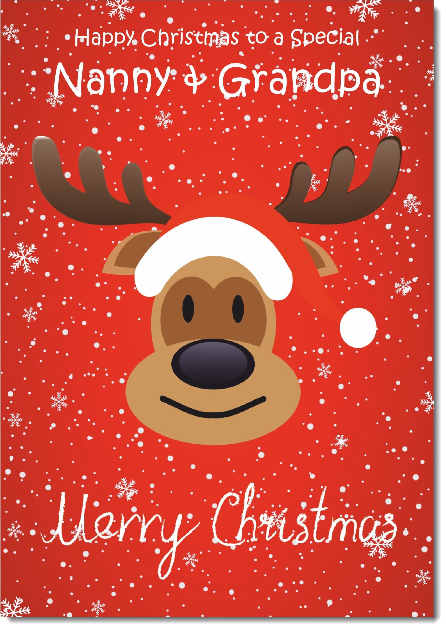 Nanny & Grandpa Christmas Card Rudolph on Red Background