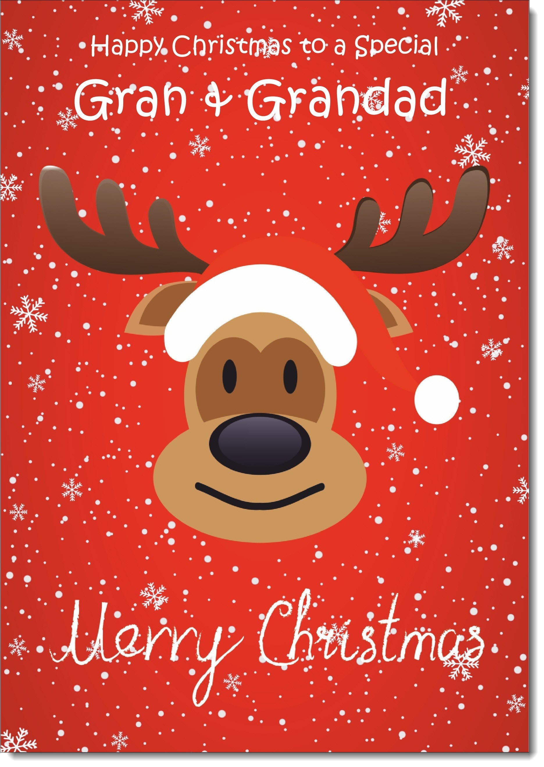Gran & Grandad Christmas Card Rudolph on Red Background