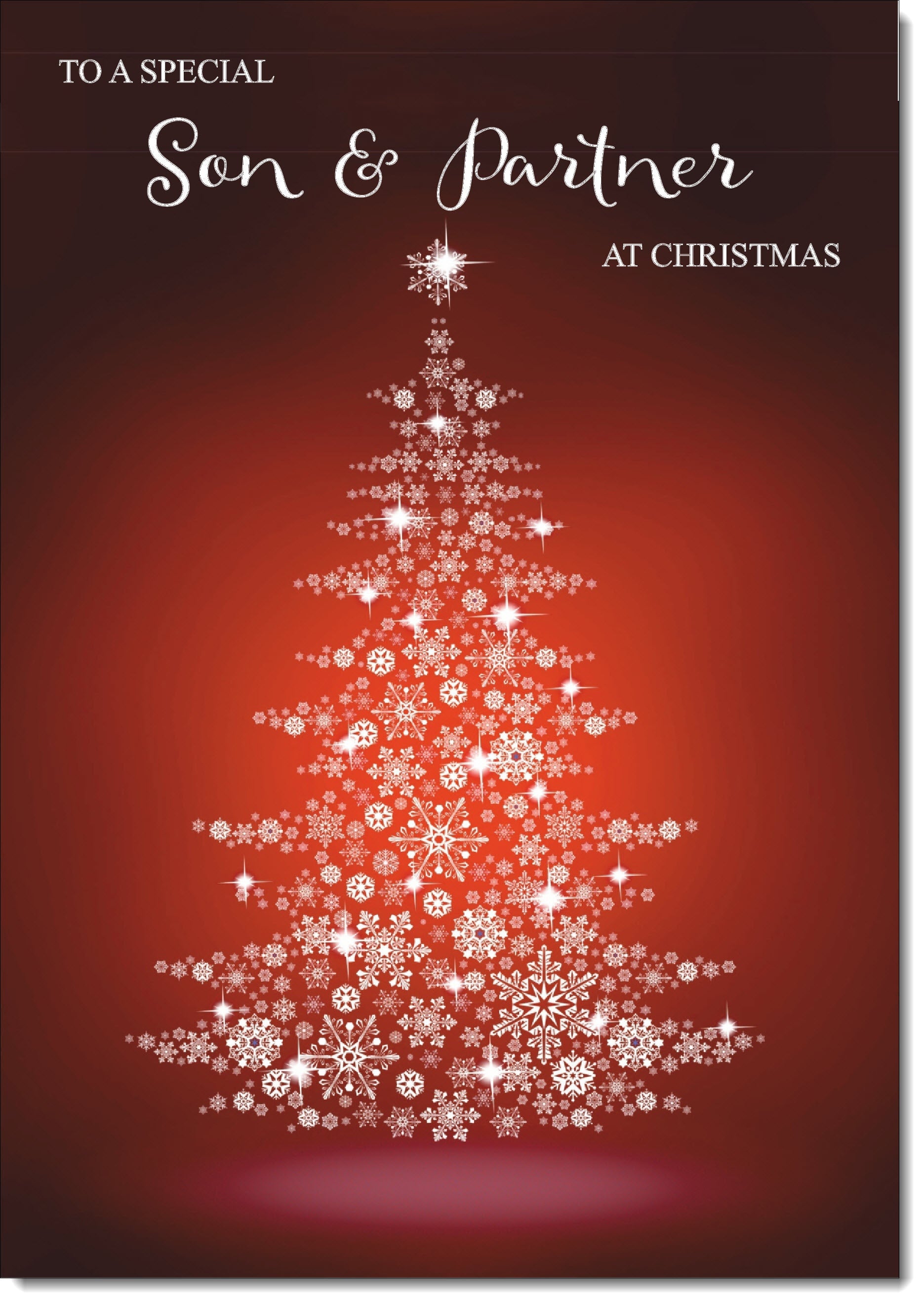 Son & Partner Christmas Card Red Snowflake Christmas Tree