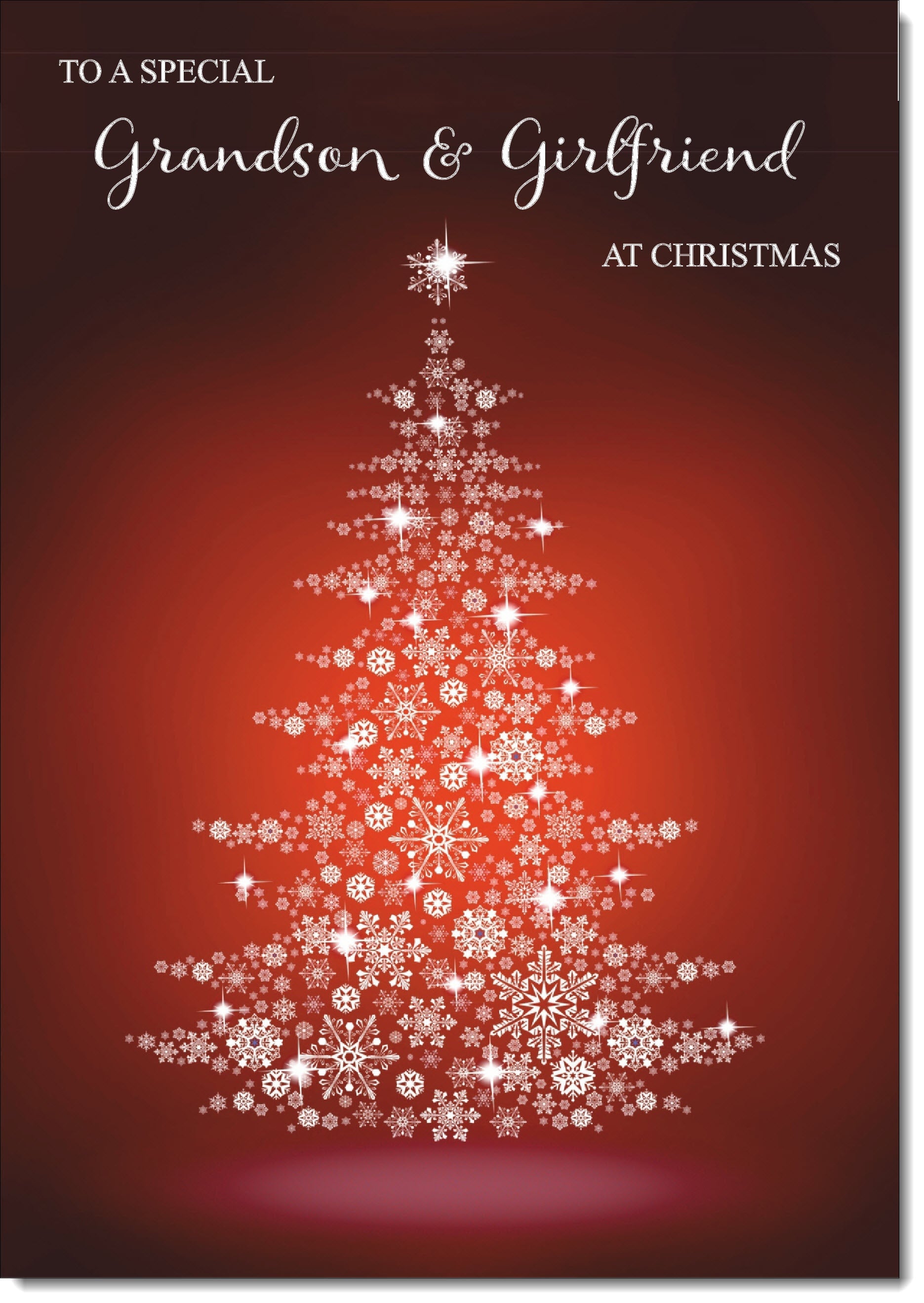 Grandson & Girlfriend Christmas Card Red Snowflake Christmas Tree