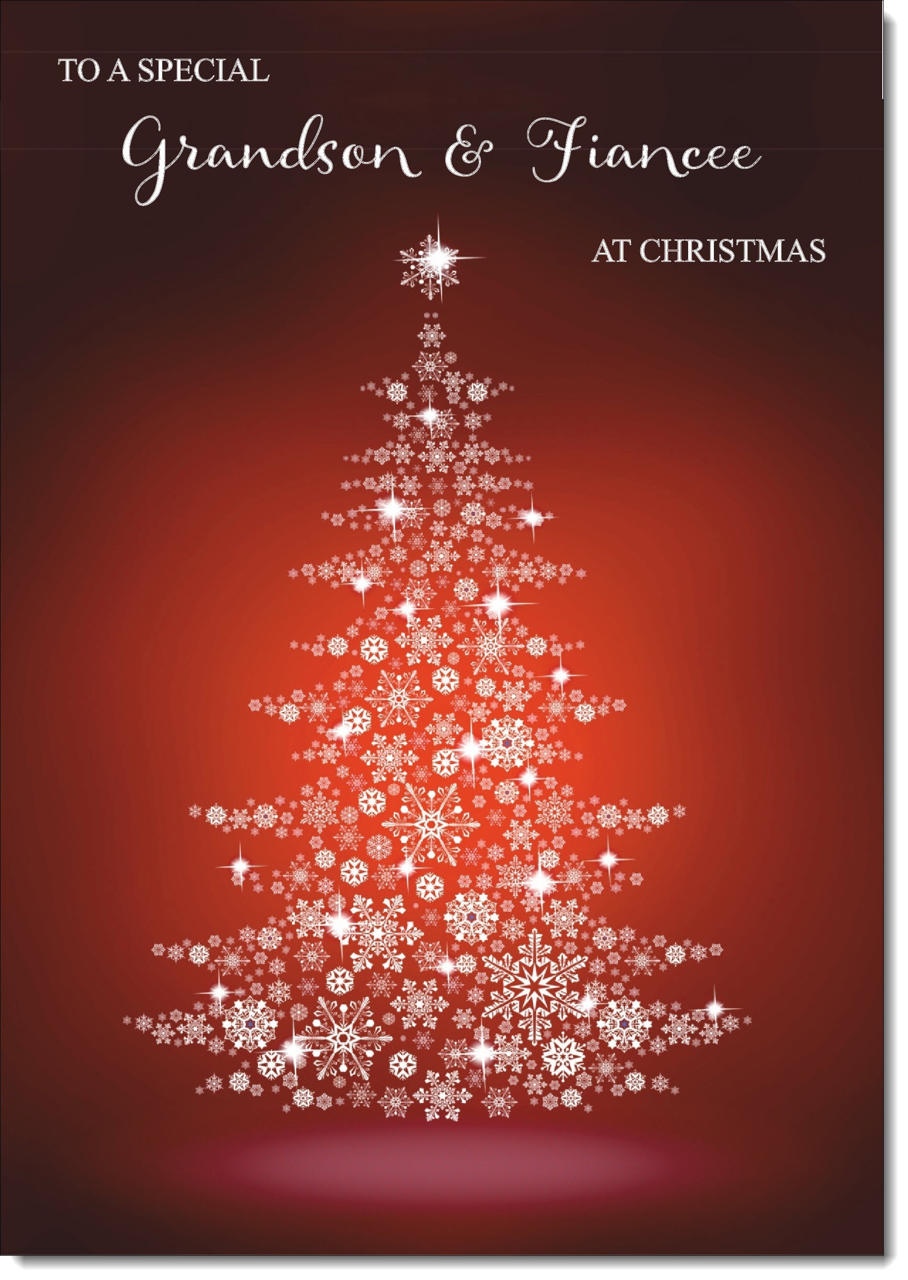 Grandson & Fiancee Christmas Card Red Snowflake Christmas Tree