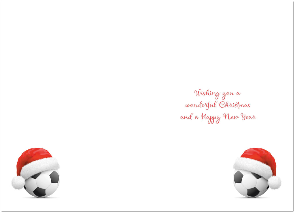 Grandchildren Christmas Card Santa Hat Football with Red Sky