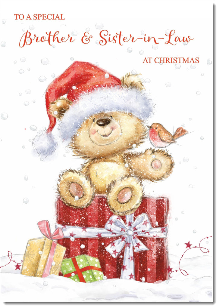 Brother & Sister-in-Law Christmas Card Cute Bear in Christmas Parcel