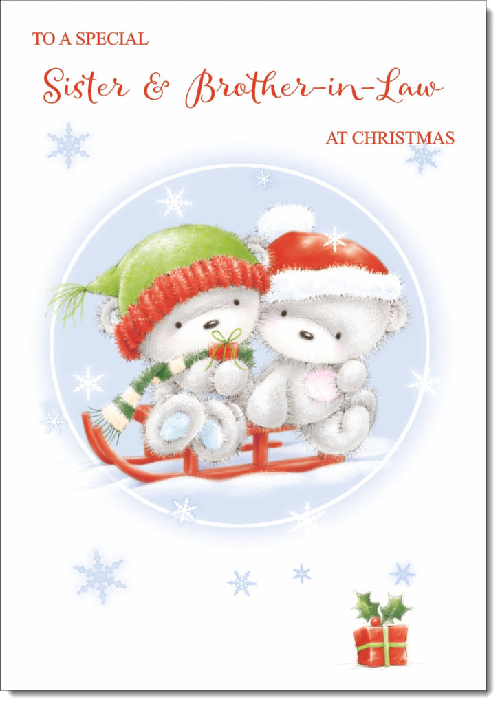 Sister & Brother-in-Law Christmas Card Cute Bears on Sled