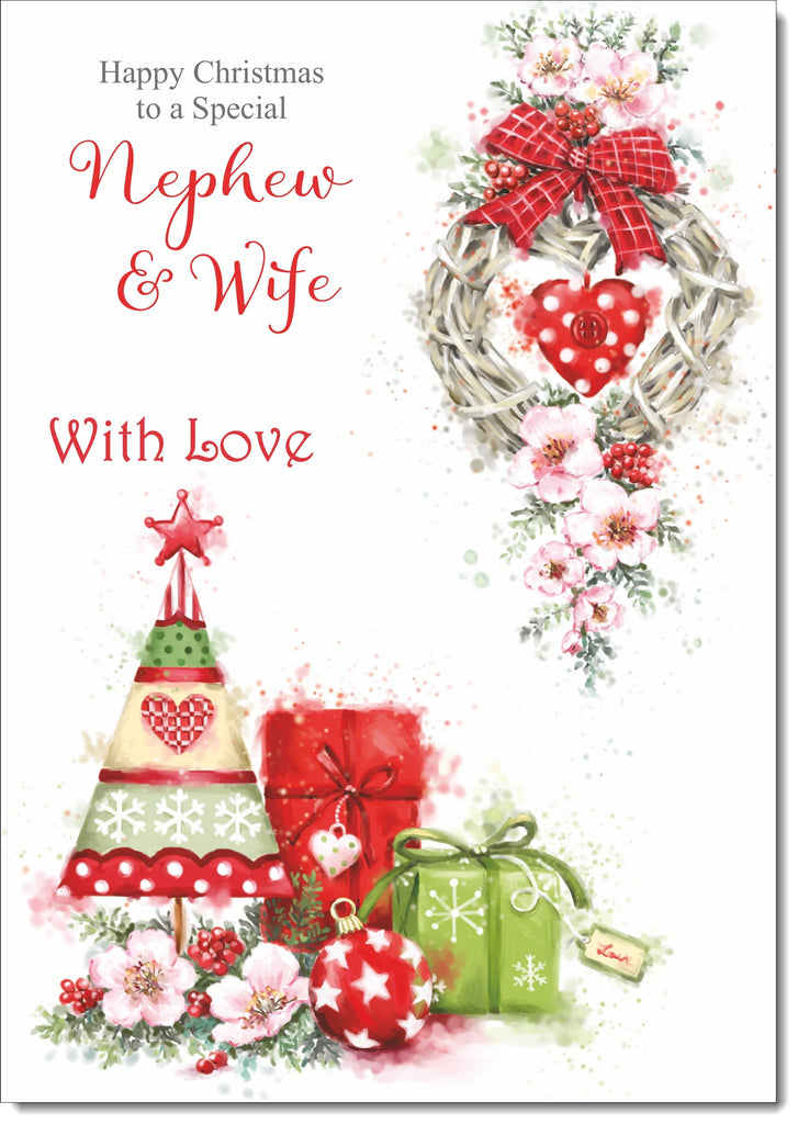 Nephew & Wife Christmas Card Hanging Heart Decoration