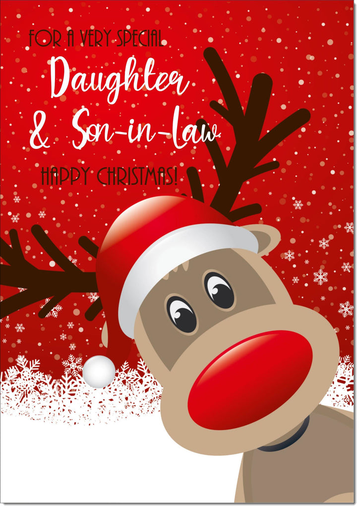 Daughter & Son-in-Law Christmas Card Rudolph in Snow