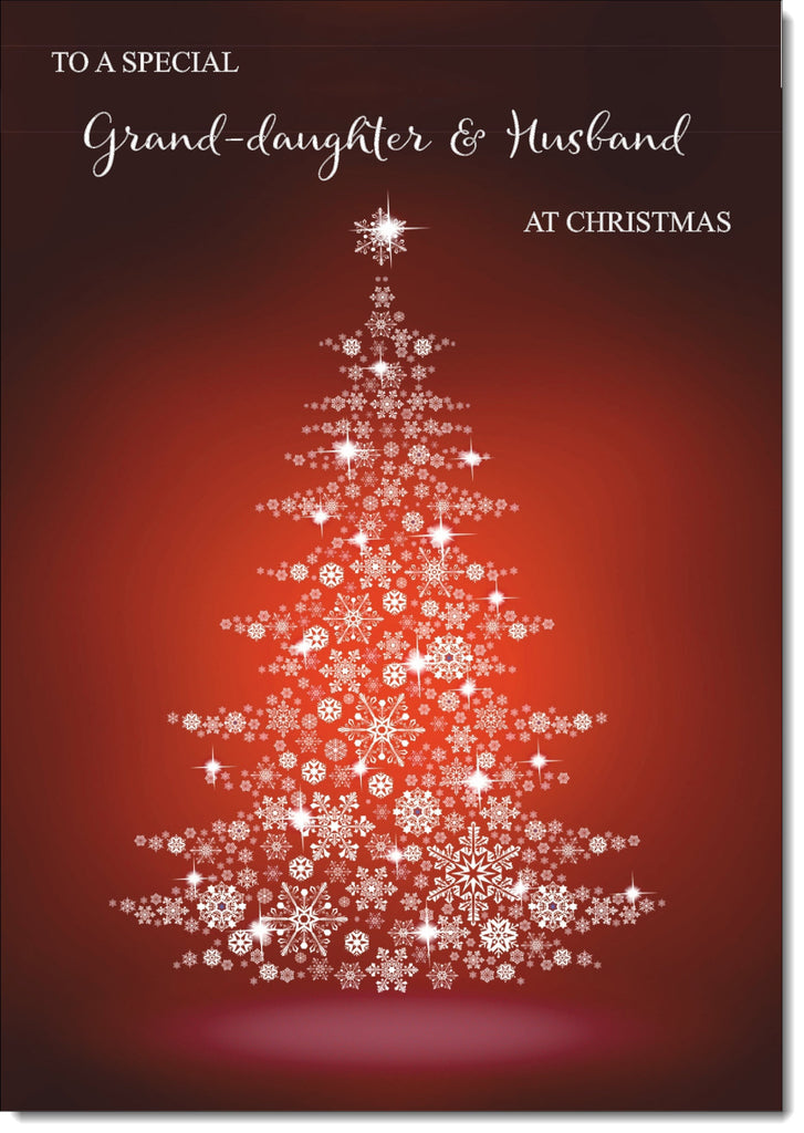 Granddaughter & Husband Christmas Card Red Snowflake Christmas Tree