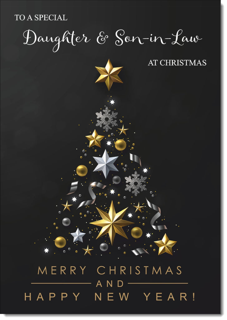 Daughter & Son-in-Law Christmas Card Gold Star Christmas Tree