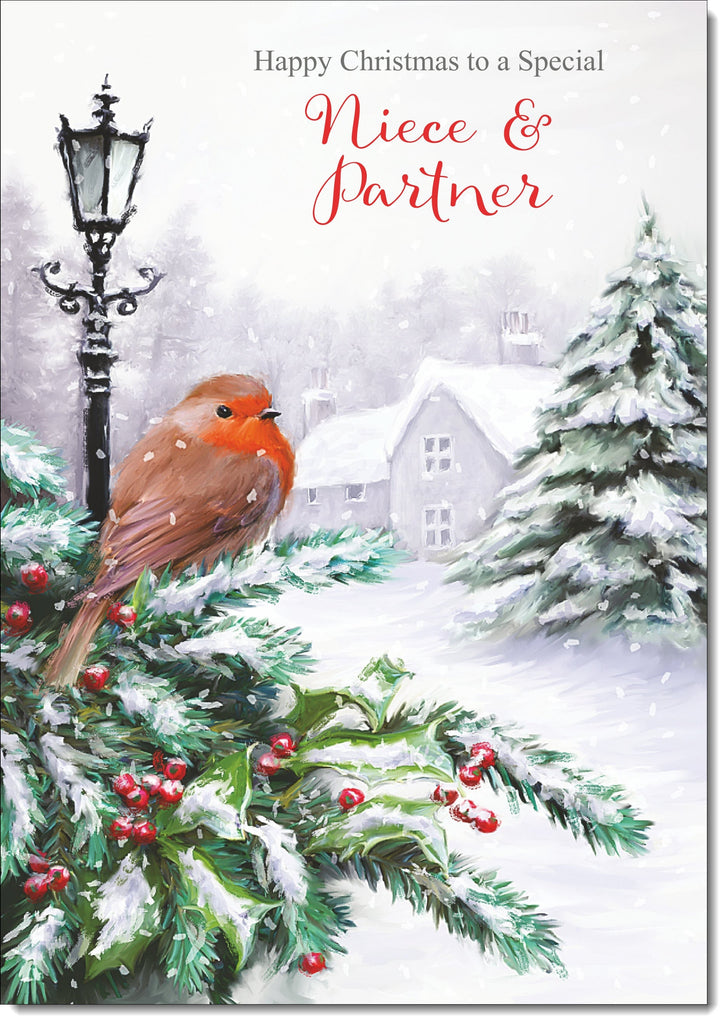 Granddaughter & Partner Christmas Card Robin in Winter Scene