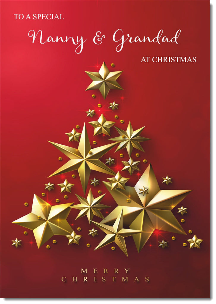 Nanny & Grandad Christmas Card Gold Star Christmas Tree