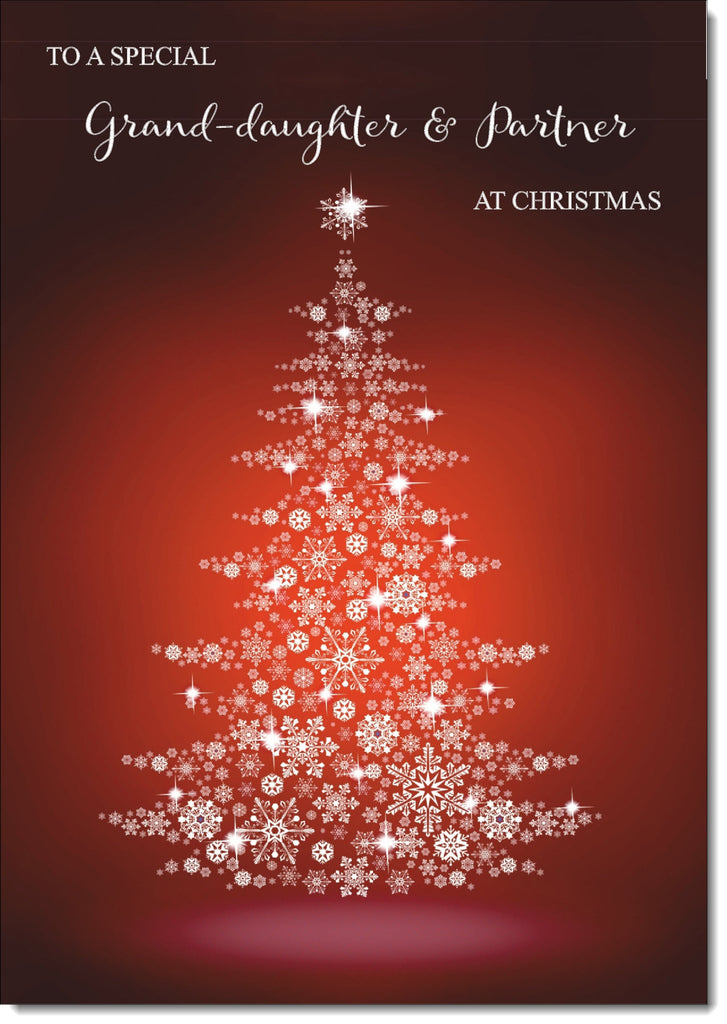 Granddaughter & Partner Christmas Card Red Snowflake Christmas Tree