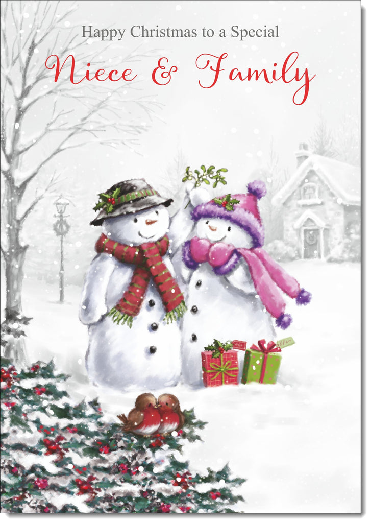 Niece & Partner Christmas Card Cute Bear with Snowman